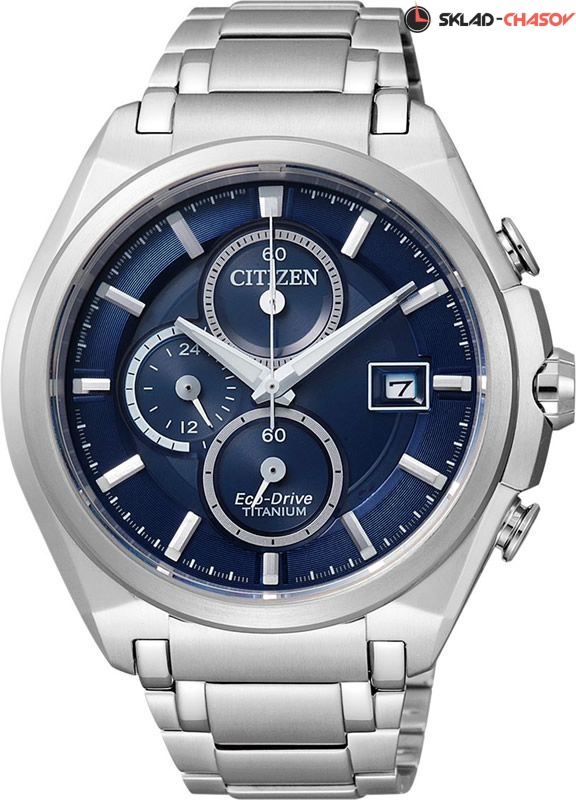 Система Eco-Drive не требующая замены батарейки. Питание от солнечной энергии, запас энергии на 210 дней. Функция индикации заряда (EOL). Часы-хронограф с секундомером до 1ч, точность 1/5c. 12-ти и 24-х часовой формат времени. Завинчивающаяся задняя крышка. Браслет с раскладывающейся застежкой. Застежка с системой блокировки. Заводная головка с защитой. Вес: 95 г. Гарантия 1 год.