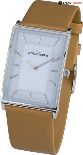 Классический прямоугольный корпус мужских часов слегка выгнут, что позволяет ему удобно прилегать к запястью. Корпус выполнен из нержавеющей стали с гипоаллергенными свойствами. На циферблате прямые линии хорошо читаемых стрелок указывают часы и минуты. В позиции «6 часов» расположен дополнительный индикатор даты. Циферблат защищен минеральным стеклом с сапфировым напылением, что повышает его ударопрочность и стойкость к появлению микроцарапин. Голубой циферблат часов дополняет широкий гладкий ремешок из натуральной кожи бежевого цвета, который мягко облегает запястье и позволяет коже дышать.