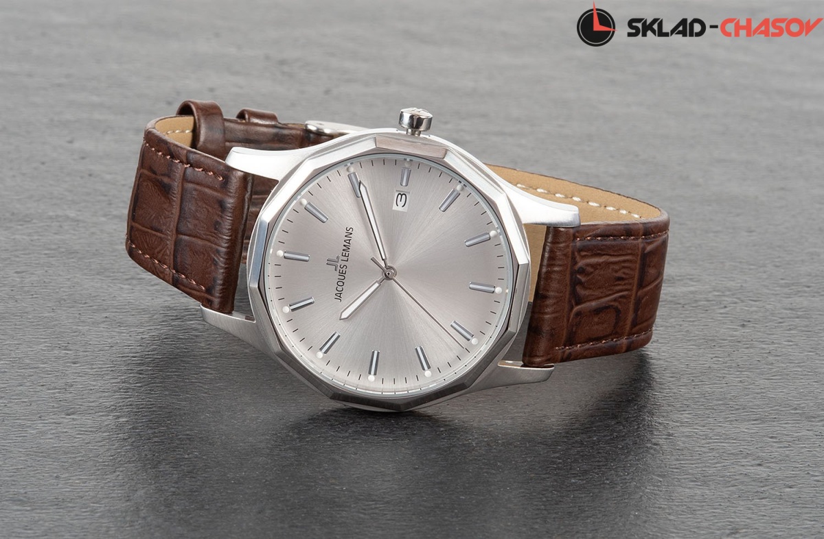 Точный кварцевый механизм. Центральная секундная стрелка. Окошко даты. • Точность хода не хуже -10 +15 сек./в месяц. • Минеральное стекло устойчивое к возникновению царапин. • Корпус из высококачественного стального сплава 316L с высокими антикоррозийными свойствами. • Кожаный ремешок. • Водозащита до 5 АТМ. • Размер корпуса D 39мм.