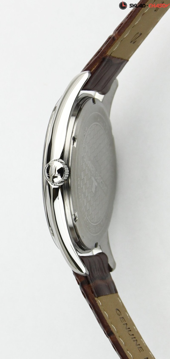 • Циферблат с шлифовкой в стиле «солнечные лучи», аппликация часовых меток с покрытием цвета родия и ювелирной огранкой.