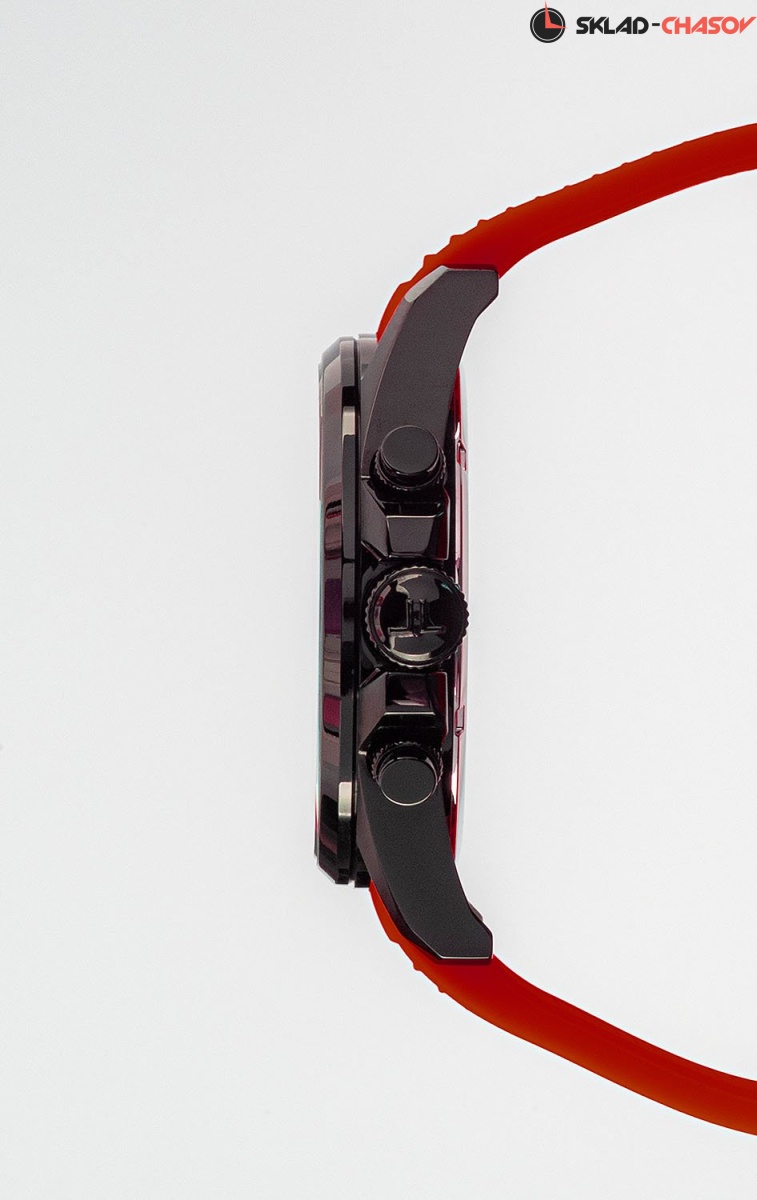 Спортивные часы с ярким характером! Корпус хронографа из нержавеющей стали диаметром 44 мм дополнен PVD-покрытием черного цвета. На черном циферблате размещены дополнительные индикаторы 24-часов, даты, счетчики минут и секунд. В часах с кварцевым механизмом установлены ударопрочное минеральное стекло Crystex и завинчивающаяся задняя крышка. Водостойкость составляет 10 АТМ. Зеленый ремешок из силикона несомненно привлечет внимание. Эти часы идеально подходят как для спортивного, так и для повседневного образа.