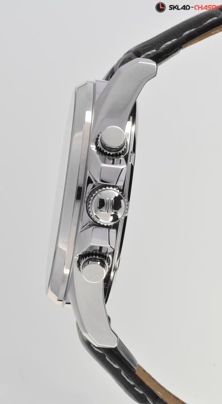 Точный кварцевый механизм хронографа. Центральная секундная стрелка. Окошко даты. • Точность хода не хуже от -10 до +20 сек. в месяц.