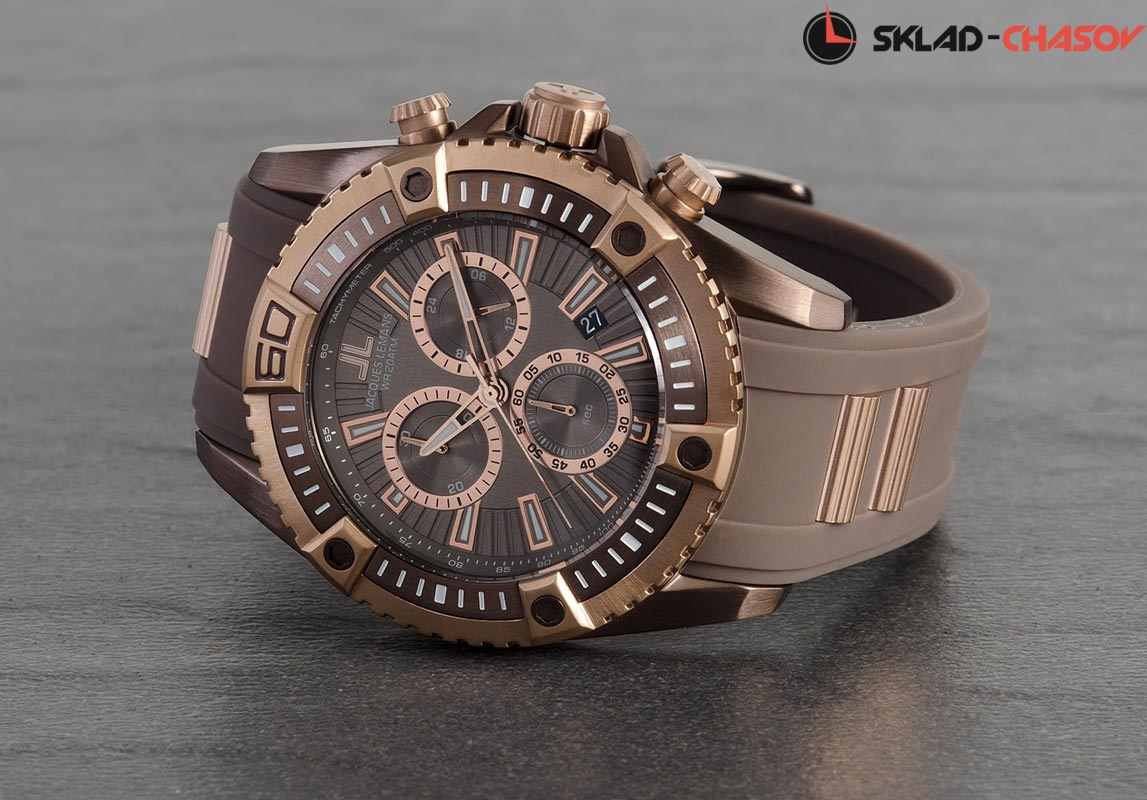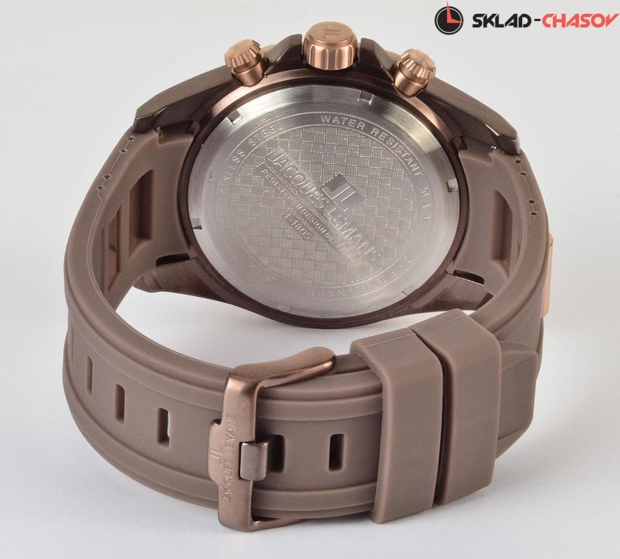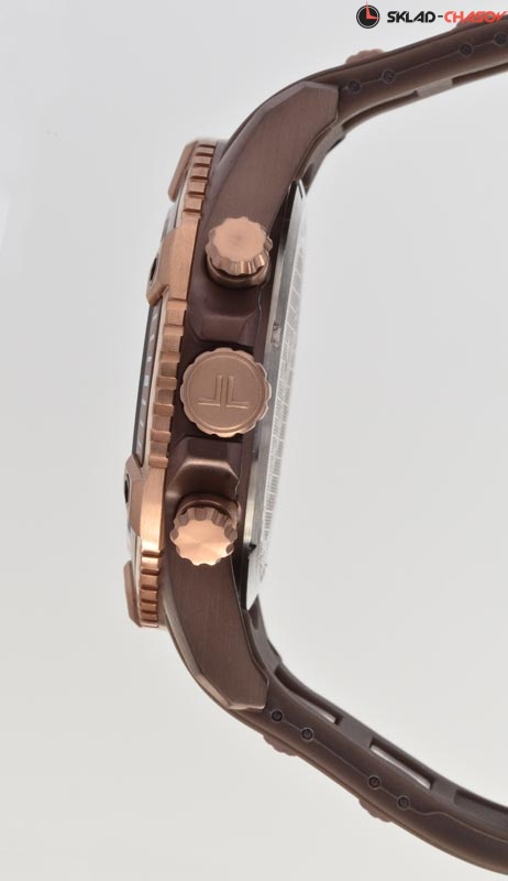 Точный кварцевый механизм хронографа. Смещенная секундная стрелка. Окошко даты. • Точность хода не хуже -10 +15 сек./в месяц. • Стрелочный указатель времени суток с 24-х часовой шкалой. • Корпус из высококачественной нержавеющей стали со стойким PVD покрытием. • Минеральное стекло устойчивое к возникновению царапин. • Диаметр корпуса 46 мм. • Силиконовый ремешок. • Водозащита до 20 АТМ.