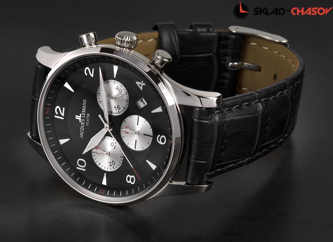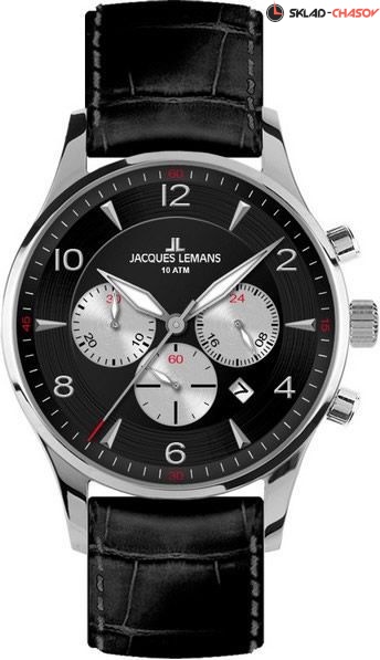 Многофункциональные стильные часы-хронограф гармонично впишутся в Ваш повседневный стиль одежды. Не теряйте время! Мужские наручные кварцевые часы из коллекции London выполнены в круглом корпусе. • Корпус из высококачественного стального сплава 316L с высокими антикоррозийными свойствами. • Диаметр корпуса 40 мм. • Часы оснащены ремешком из натуральной кожи черного цвета. Ремешок с прошивкой по периметру. • Минеральное стекло с повышенной прочностью устойчивое к возникновению царапин. • Кварцевый механизм хронографа не требует регулярного подзавода и гарантирует продолжительное время работы от батарейки. • Точность хода не хуже -10 +15 сек./в месяц. • Черный циферблат оснащен тремя дополнительными круглыми серебристыми счетчиками: стрелочный указатель секунды и стрелочный указатель времени суток с 24-часовым форматом времени, центральной секундной стрелкой, квадратной апертурой с датой между отметками 4 и 5 часов и логотип. • Арабские цифры чередуются с маркерами часа. • Стрелки покрыты люминесцентным составом. • Корпус обладает водозащитой 10 АТМ, что позволяет надежно защитить механизм во время ныряния.