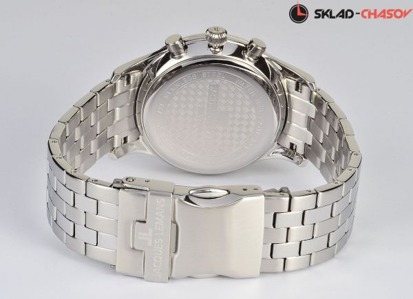 • Японский кварцевый механизм с аналоговой индикацией. • Точность хода с погрешностью не более -/+20 сек. в месяц. • Центральные часовая, минутная и секундная стрелки. • Индикация даты. • Индикатор времени суток в 24-часовом формате. • Хронограф с маленькой секундной стрелкой и 30-минутным индикатором. • Корпус выполнен из нержавеющей стали 316L, поверхности с матовой шлифовкой (сатинирование) и полировкой до зеркального блеска. • Диаметр корпуса составляет 40 мм. • Фирменное стекло Crystex сочетает твердость сапфирового и стойкость к ударному воздействию минерального. • Циферблат рельефный в ретро-стиле, аппликация часовых меток и цифр с винтажным дизайном, покрытие цвета золота или родия. • Водостойкость 100 метров (10 АТМ). • Браслет с литыми звеньями из нерж. стали, браслетная застежка с защитным фиксатором, раскладывающаяся при нажатии на кнопки.