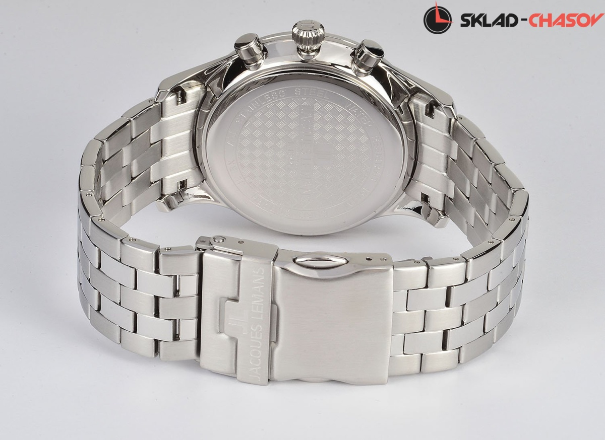 Точный кварцевый механизм хронографа. Смещенная секундная стрелка. Окошко даты. • Точность хода не хуже -10 +15 сек./в месяц. • Минеральное стекло устойчивое к возникновению царапин. • Корпус из высококачественного стального сплава 316L с высокими антикоррозийными свойствами. • Регулируемый по длине браслет из нержавеющей стали. • Водозащита до 10 АТМ. • Тахометрическая шкала.