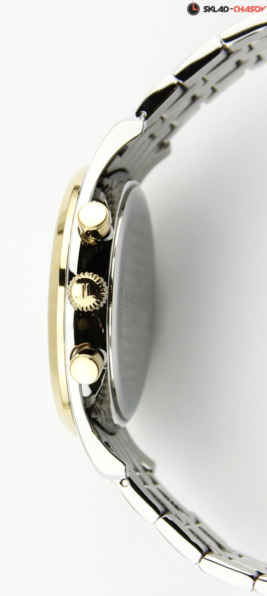 Точный кварцевый механизм хронографа. Смещенная секундная стрелка. Окошко даты. • Точность хода не хуже -10 +15 сек./в месяц. • Минеральное стекло устойчивое к возникновению царапин. • Корпус из высококачественного стального сплава 316L с высокими антикоррозийными свойствами. • Регулируемый по длине браслет из нержавеющей стали. • Водозащита до 10 АТМ. • Тахометрическая шкала.