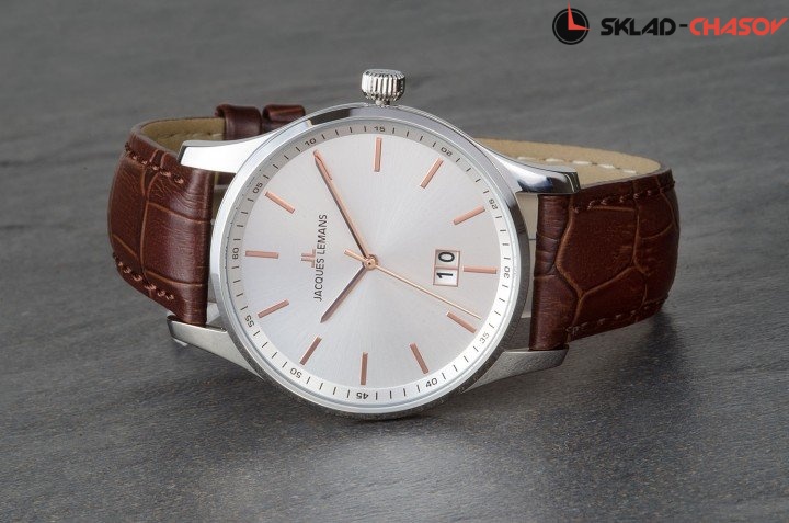 • Кожаный ремешок с тиснением «под аллигатора» и прошивкой, стандартная застежка с шипом.