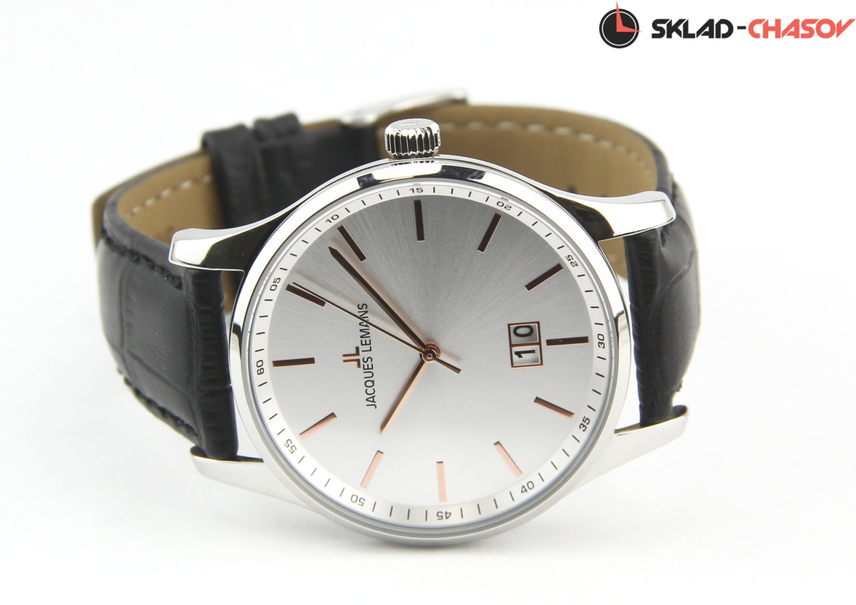 • Кожаный ремешок с тиснением «под аллигатора» и прошивкой, стандартная застежка с шипом.