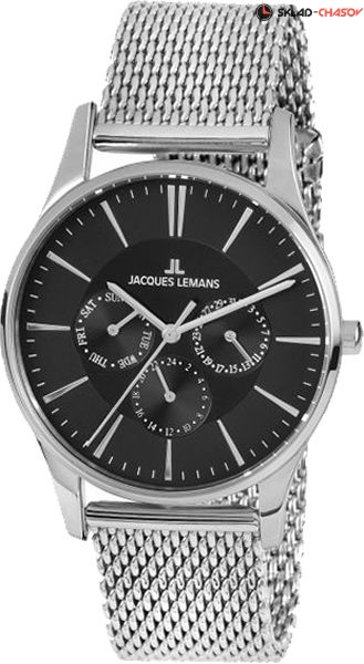 Современные многофункциональные часы в круглом корпусе из прочной нержавеющей стали диаметром 40 мм. На объемном циферблате черного цвета расположены дополнительные индикаторы даты, дня недели и 24-х часов. Они визуально выделены полировкой в виде солнечных лучей – это смотрится эффектно и помогает легко читать нужные показатели. В часах с кварцевым механизмом установлено ударопрочное минеральное стекло Crystex. Стальной ремешок модного миланского плетения дополняет специальная «плавающая» застежка. Она позволяет самостоятельно регулировать длину браслета. Надежные и функциональные, эти часы хорошо подходят для ежедневного использования, они украсят любой ваш образ: деловой или в стиле casual.