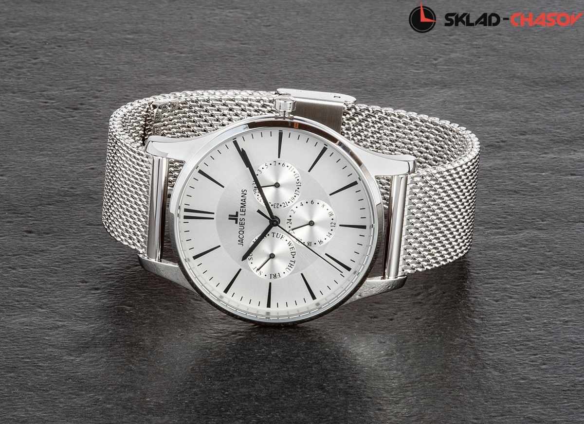 Современные многофункциональные часы в круглом корпусе из прочной нержавеющей стали диаметром 40 мм. На объемном циферблате белого цвета расположены дополнительные индикаторы даты, дня недели и 24-х часов. Они визуально выделены полировкой в виде солнечных лучей – это смотрится эффектно и помогает легко читать нужные показатели. В часах с кварцевым механизмом установлено ударопрочное минеральное стекло Crystex. Стальной ремешок модного миланского плетения дополняет специальная «плавающая» застежка. Она позволяет самостоятельно регулировать длину браслета. Надежные и функциональные, эти часы хорошо подходят для ежедневного использования, они украсят любой ваш образ: деловой или в стиле casual.