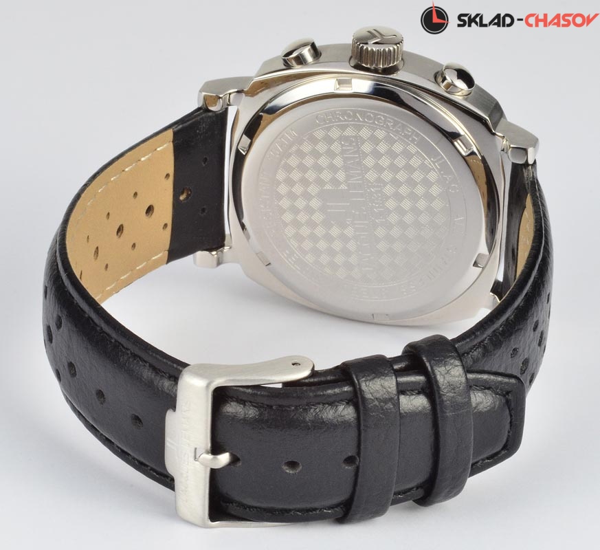 • Японский кварцевый механизм. • Точность хода с погрешностью не более -/+20 сек. в месяц. • Центральные часовая и минутная стрелки, маленький секундный индикатор. • Апертура даты. • Индикатор времени суток в 24-часовом формате. • Хронограф с центральной секундной стрелкой и 60-минутным индикатором. • Корпус выполнен из нержавеющей стали 316L, поверхности с матовой шлифовкой (сатинирование) и полировкой до зеркального блеска. • Ширина/высота (без учета дужек) корпуса 40 мм. • Фирменное минеральное стекло с покрытием Crystex с повышенной стойкостью к возникновению царапин. • Рельефный циферблат, аппликация часовых меток и элементов дизайна с покрытием цвета золота. • Водостойкость 100 метров (10 АТМ). • Кожаный ремешок с перфорацией, стандартная застежка с шипом.
