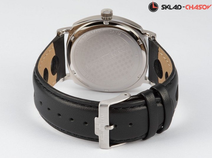 Точный кварцевый механизм. Центральная секундная стрелка. Окошко даты. • Точность хода не хуже от -10 до +20 сек. в месяц. • Корпус из высококачественного стального сплава 316L с высокими антикоррозийными свойствами. • Водозащита до 10 АТМ. • Минеральное стекло устойчивое к возникновению царапин. • Кожаный ремешок. • Простая ремешковая застежка. • Светонакопительный состав на стрелках и маркерах часа.