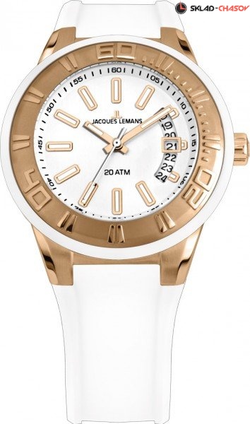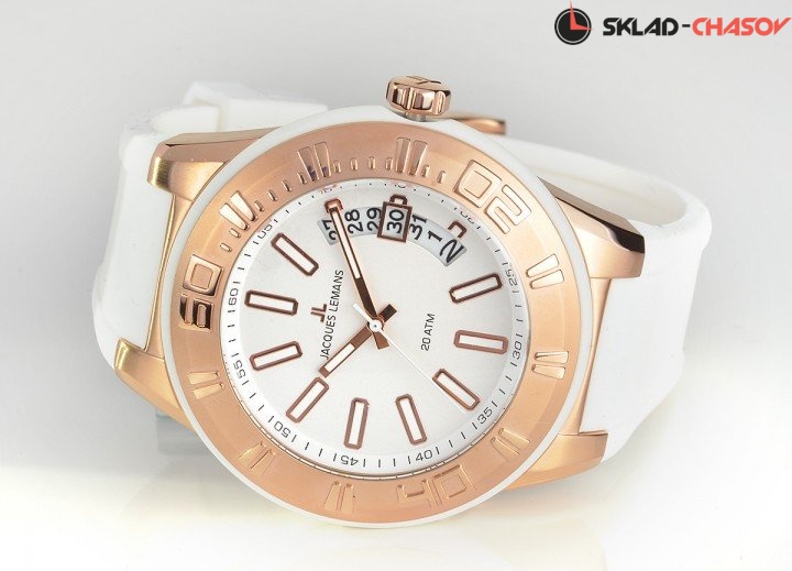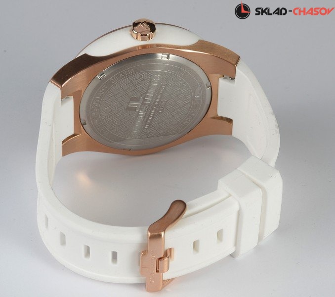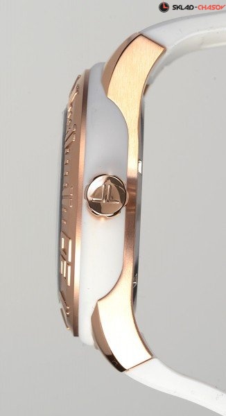 С этими стильными, яркими и невероятно привлекательными часами можно смело рисковать и совершать безумные поступки. Мужские наручные часы в круглом корпусе из коллекции Miami. Диаметр корпуса 40 мм, длина с душками 44 мм, толщина 10 мм. Корпус часов выполнен из высоколегированной полированной стали с частичным PVD-покрытием белого цвета и стойким PVD-покрытием розовой позолотой. Часы оснащены ремешком из каучука белого цвета. Ремешок не промокает, очень эластичен, долговечен. Крепление ремешка к корпусу жесткое. Циферблат защищен от повреждений прочным минеральным стеклом. Данная модель имеет водозащиту класса WR200. Белый циферблат с длинными маркерами часа. Крупные основные стрелки. Центральная секундная стрелка. Ретроградный указатель даты возле отметки 3 часа. Стрелки и метки с люминесцентным составом. В сердце модели работает точный кварцевый механизм, который обладает высокой точностью хода, более устойчив к внешним воздействиям и не требует дополнительного завода. Точность хода не хуже -10 +15 сек./в месяц.