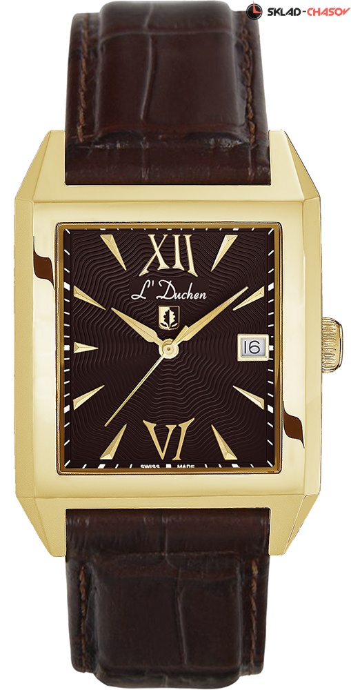 Дизайнеры марки L'Duchen, разрабатывая мужские часы коллекции Lumiere, позаботились не только о достойном внешнем виде модели, но о практичности в использовании. Прямоугольный корпус изогнут и имеет анатомическую форму. Часы удобно ложатся на руке. Полированные корпус часов выполнены из высоколегированной нержавеющей стали 316L с PVD-покрытием из желтого золота. Грани корпуса интересно создают переливы света и притягивают внимание. Темно-коричневый циферблат декорирован волнообразным гильоше. Указатель даты расположен на 3 часах и украшен стальной окантовкой. Часовая и минутная стрелки сделаны в мечеобразной форме. Они смотрятся объемными и хорошо читаются. Циферблат защищен сапфировым стеклом выпуклой формы, что более сложно в исполнении.