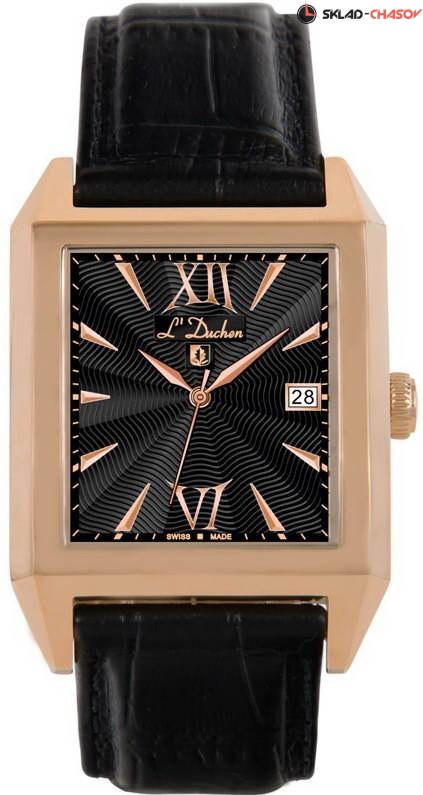 Дизайнеры марки L'Duchen, разрабатывая мужские часы коллекции Lumiere, позаботились не только о достойном внешнем виде модели, но о практичности в использовании. Прямоугольный корпус изогнут и имеет анатомическую форму. Часы удобно ложатся на руке. Полированные корпус часов выполнены из высоколегированной нержавеющей стали 316L с PVD-покрытием из розового золота. Грани корпуса интересно создают переливы света и притягивают внимание. Черный циферблат декорирован волнообразным гильоше. Указатель даты расположен на 3 часах и украшен стальной окантовкой. Часовая и минутная стрелки сделаны в мечеобразной форме. Они смотрятся объемными и хорошо читаются. Циферблат защищен сапфировым стеклом выпуклой формы, что более сложно в исполнении.