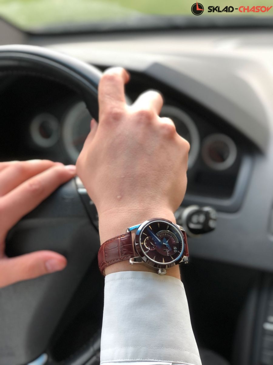 • Рельефный циферблат, доп. индикаторы со стилизацией под гильоширование, накладные часовыми индексы и элементы оформления с контрастным PVD-покрытием.