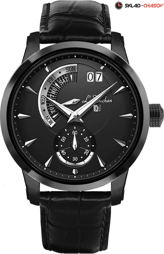 • Центральные часовая и минутная стрелки, маленький секундный индикатор на «6 часах».