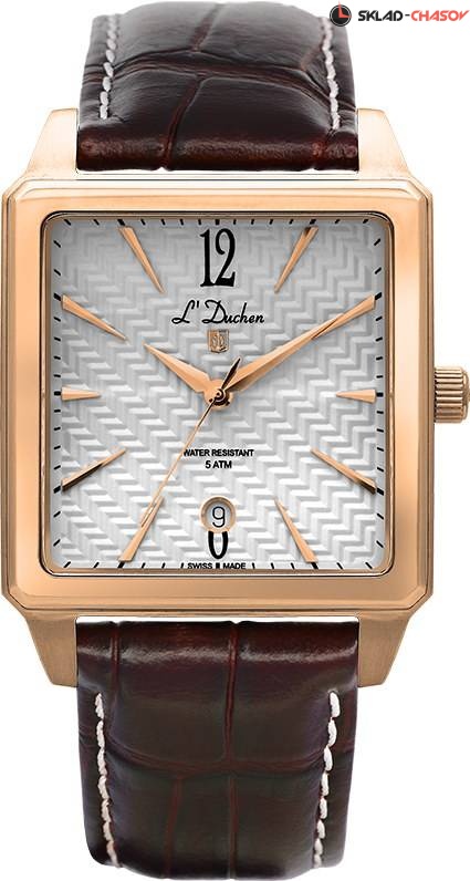 Мужские кварцевые часы выполнены в квадратном корпусе из высоколегированной нержавеющей стали 316L с PVD-покрытием из розового золота. Модель выглядит солидно и представительно благодаря белому циферблату, который декорирован гильоше в виде необычной сетчатой структуры. Указатель даты расположен на уровне шести часов и элегантно украшен стальной окантовкой. Индексы в форме пирамидок создают эффект игры света, а мечеобразные стрелки смотрятся объемными и хорошо читаемыми. Циферблат защищен сапфировым стеклом выпуклой формы, что более сложно в исполнении.