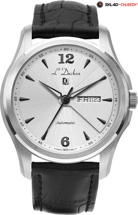 • Центральные часовая, минутная и секундная стрелки, дата и день недели в двойной апертуре.