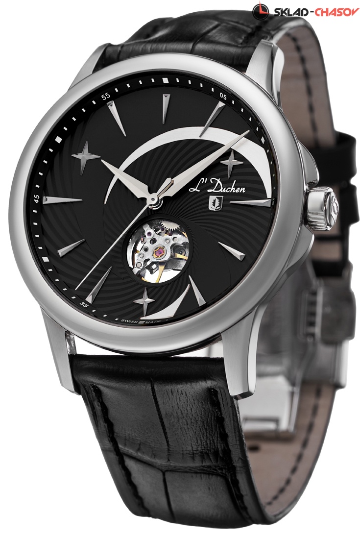 • Сквозь апертуру в циферблате видны колебания баланса, механизм доработанный специалистами компании.