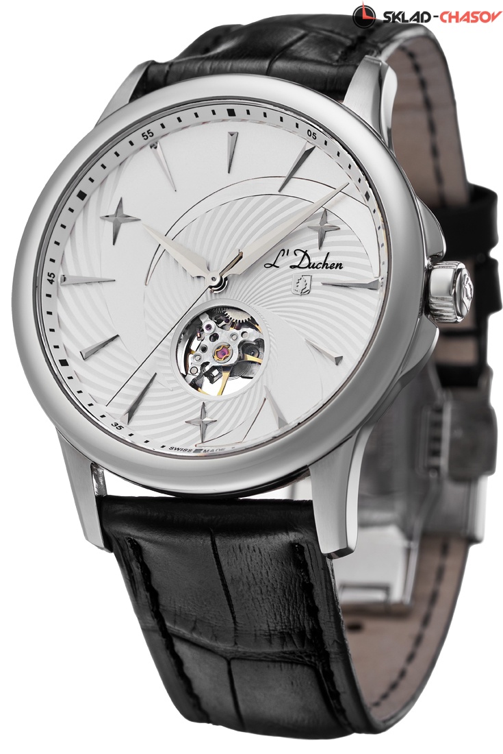 • Сквозь апертуру в циферблате видны колебания баланса, механизм доработанный специалистами компании.