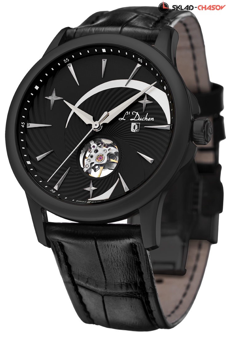 • Сквозь апертуру в циферблате видны колебания баланса, механизм доработанный специалистами компании.