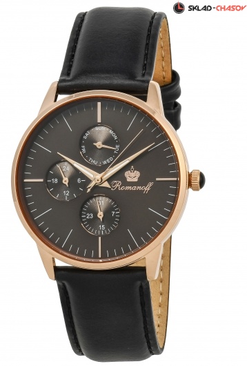 Циферблат: люминесцентные позолоченные стрелки, темно-коричневый