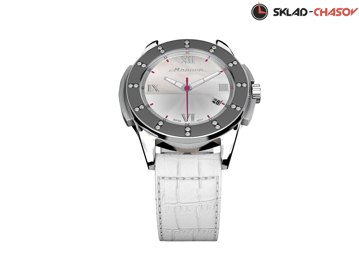 Яркая и женственная модель – результат сотрудничества российских часовщиков и швейцарских дизайнеров. В оформлении двусоставного циферблата использован натуральный перламутр, безель украшен кристаллами циркона, что выгодно оттеняет геометрию корпуса. Часы могут меняться вместе с вашими предпочтениями: кожаный ремешок сделает модель более деликатной, а дополнительный силиконовый браслет добавит образу спортивный характер.