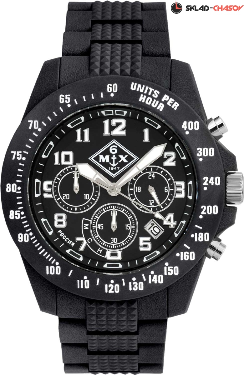 Часы-хронограф с секундомером и тахиметром. Секундомер до 30мин. Питание от солнечной энергии. Индикатор запаса хода. Запас хода при полной зарядке 90 дней. 12-ти и 24-х часовой формат времени. Корпус и браслет выполнены из материала фибергласс, который на 70% состоит стекловолокна и обладает прочностью и долговечностью металла, биологической стойкостью полимера. Циферблат с метками в виде арабских цифр. Окошко даты находится между отметками 4 и 5 часов. Рифленая заводная головка с защитой. Браслет с раскладывающейся застежкой.