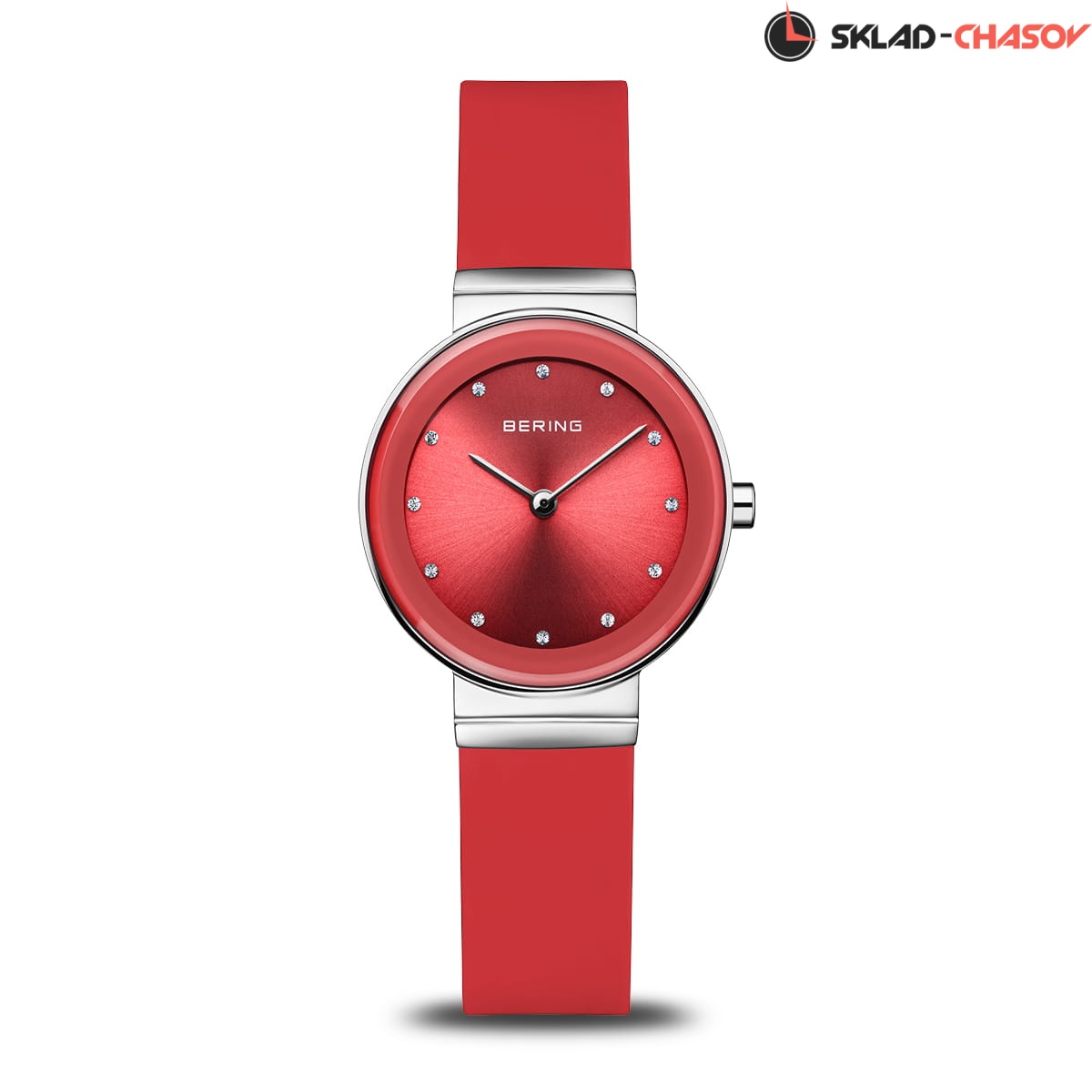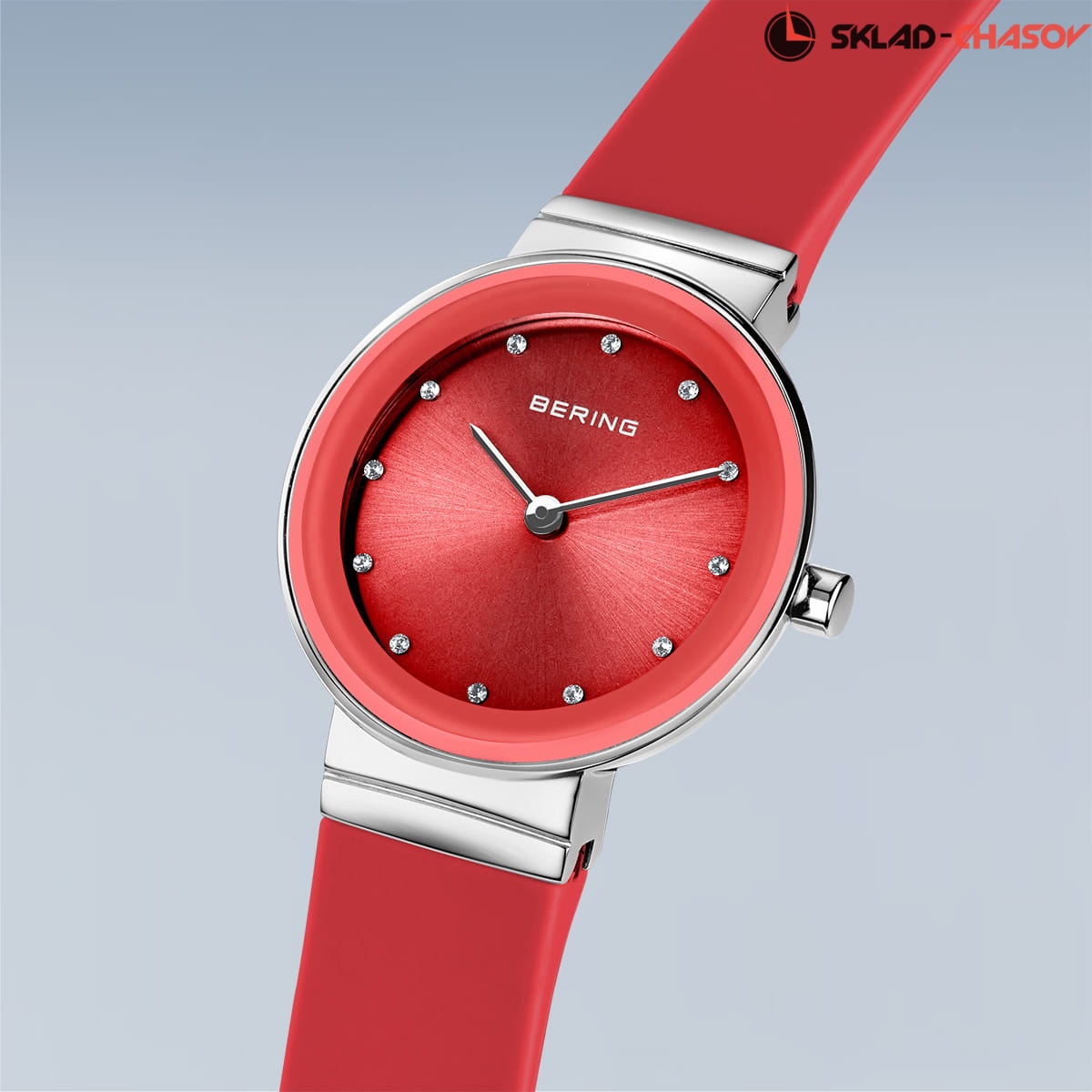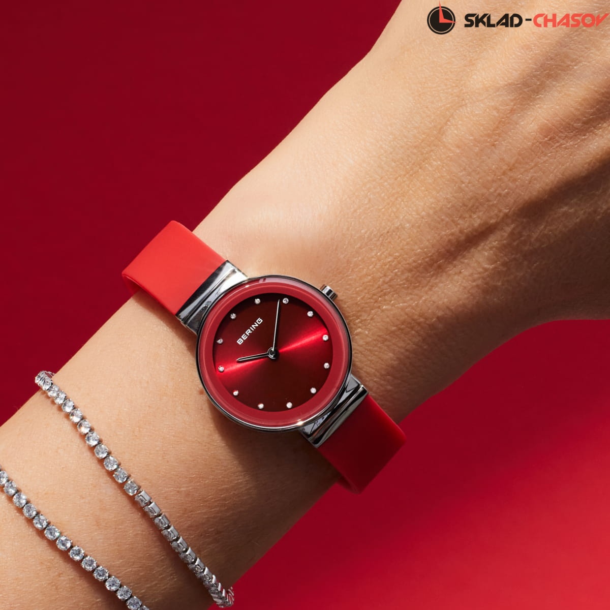 Красный циферблат с кристалами.