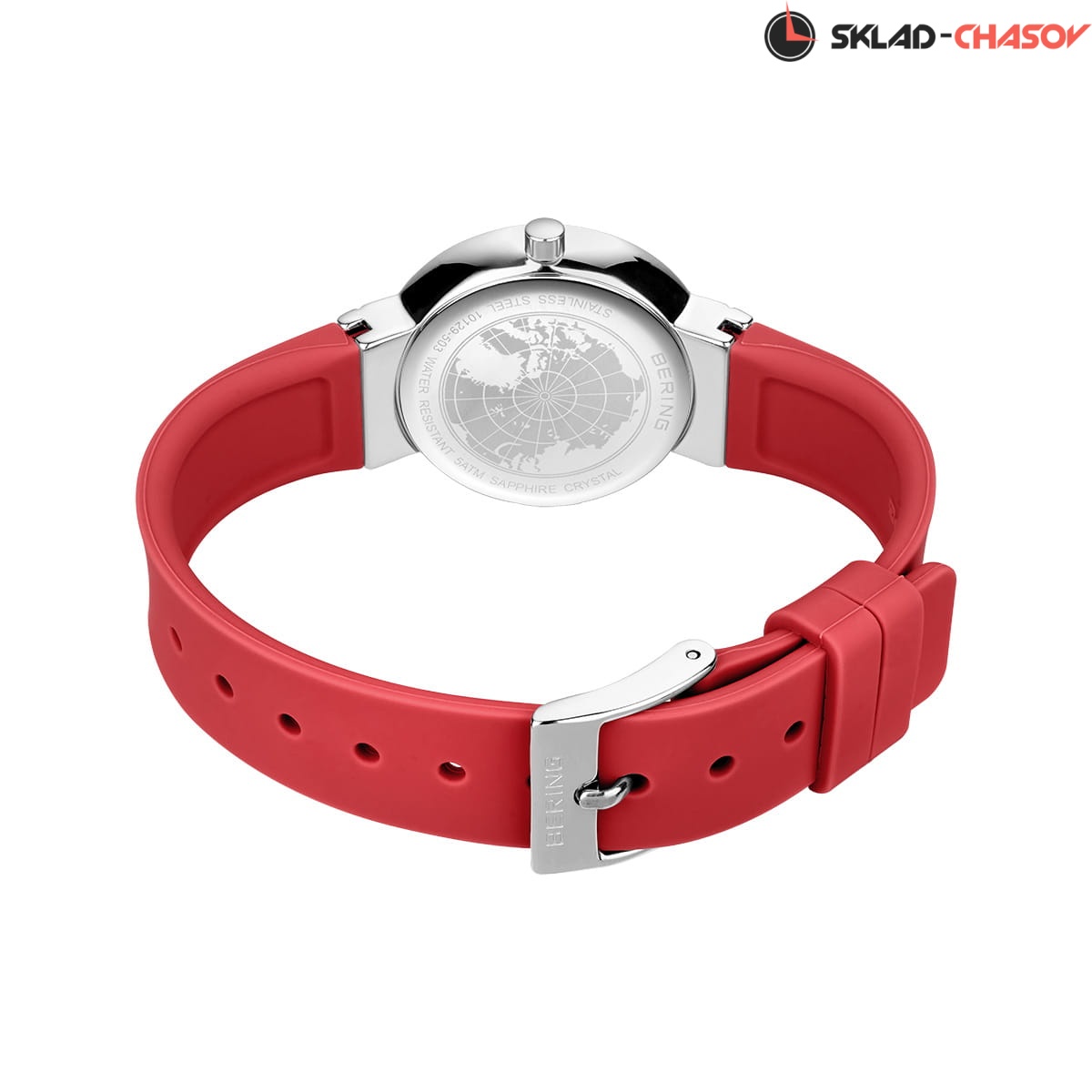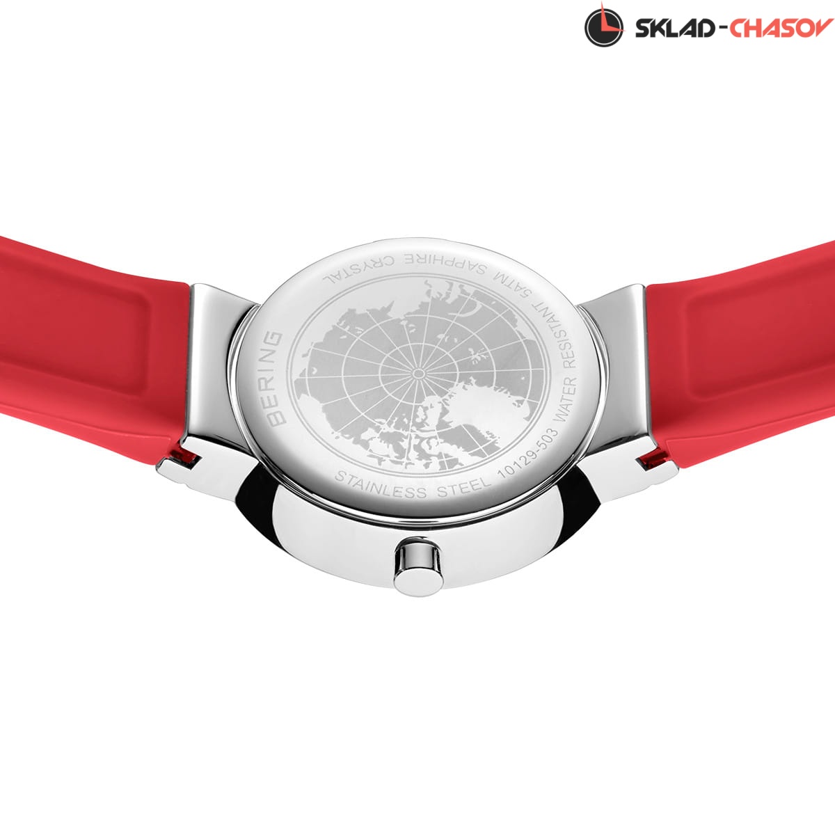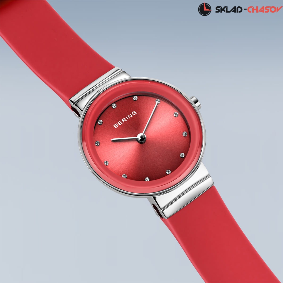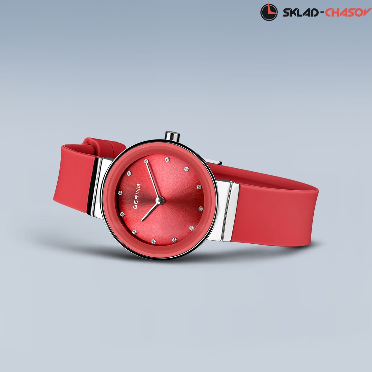 Красный циферблат с кристалами.
