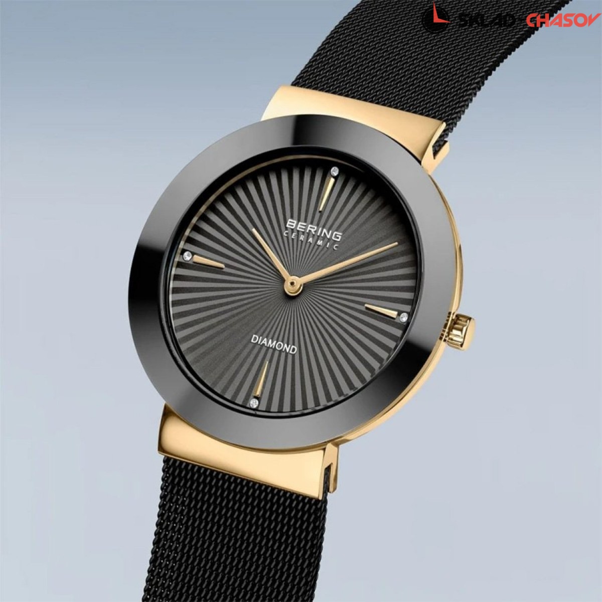 Черный циферблат с гильоширование в виде солнечныйх лучей и кристаллами.