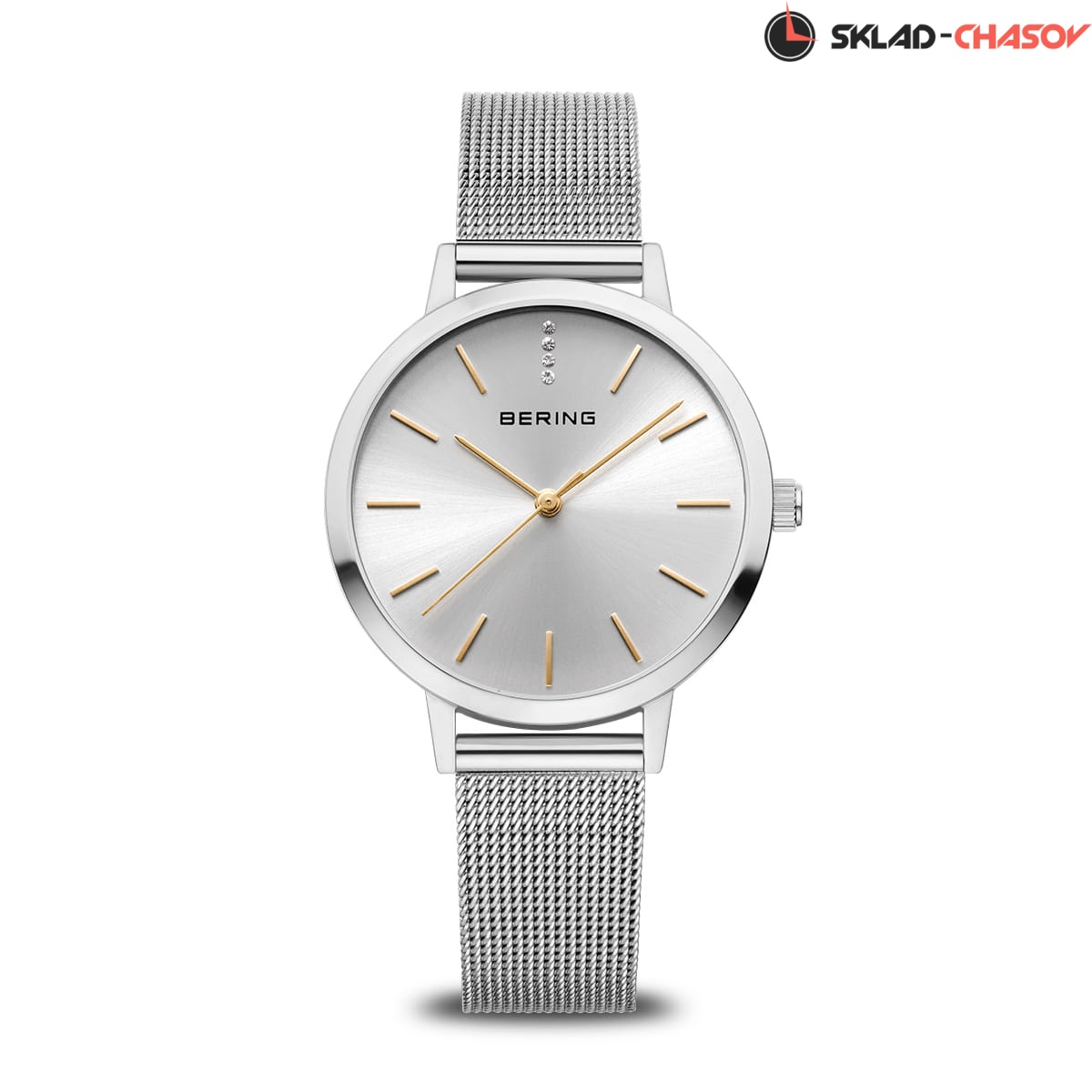 Серебристый циферблат с кристаллами.