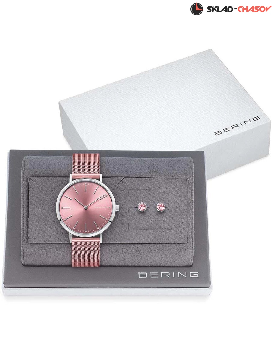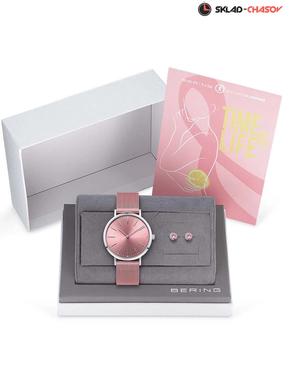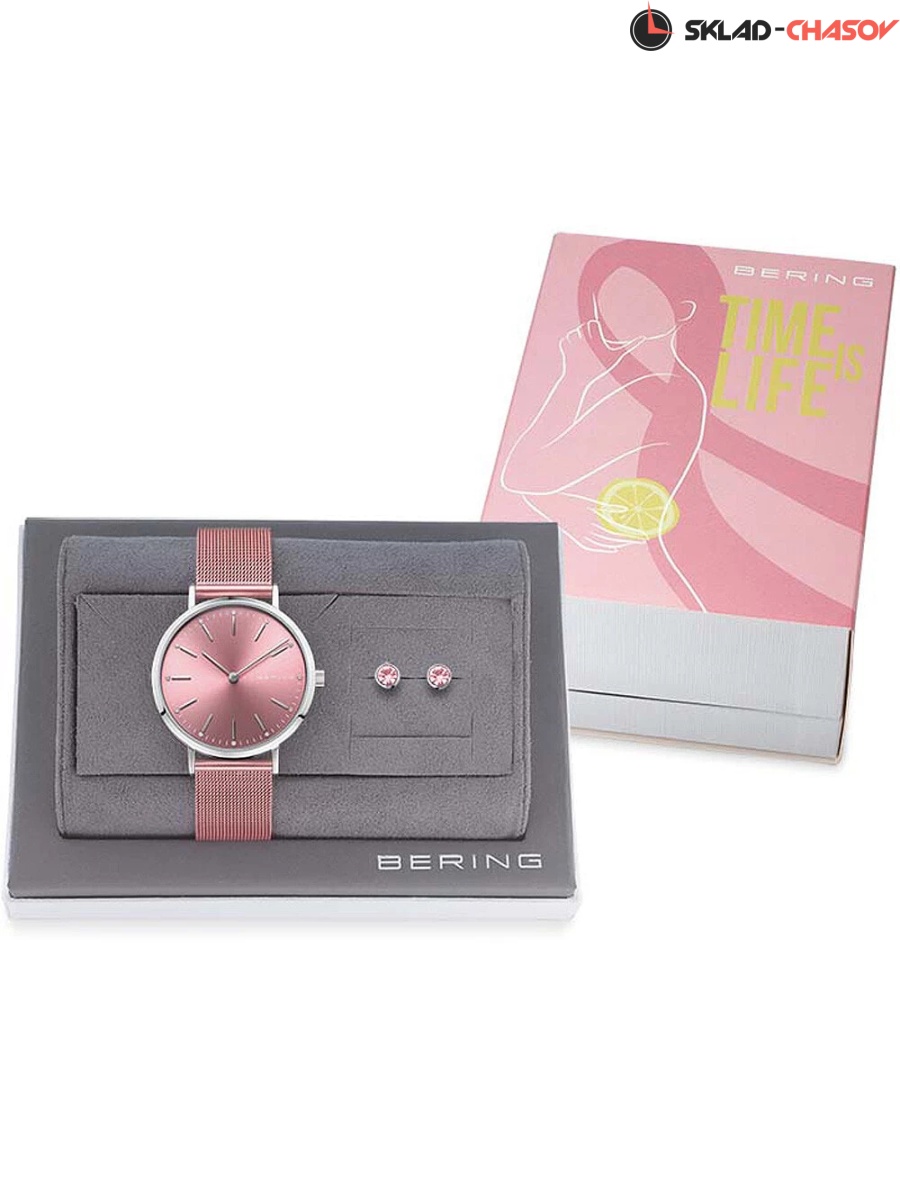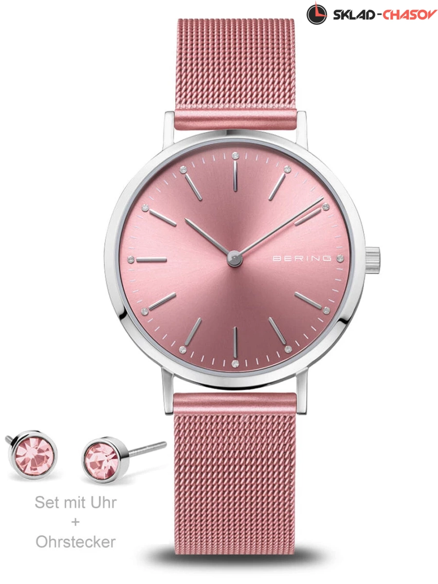 Розовый циферблат с гильошированием в виде солнечных лучей.