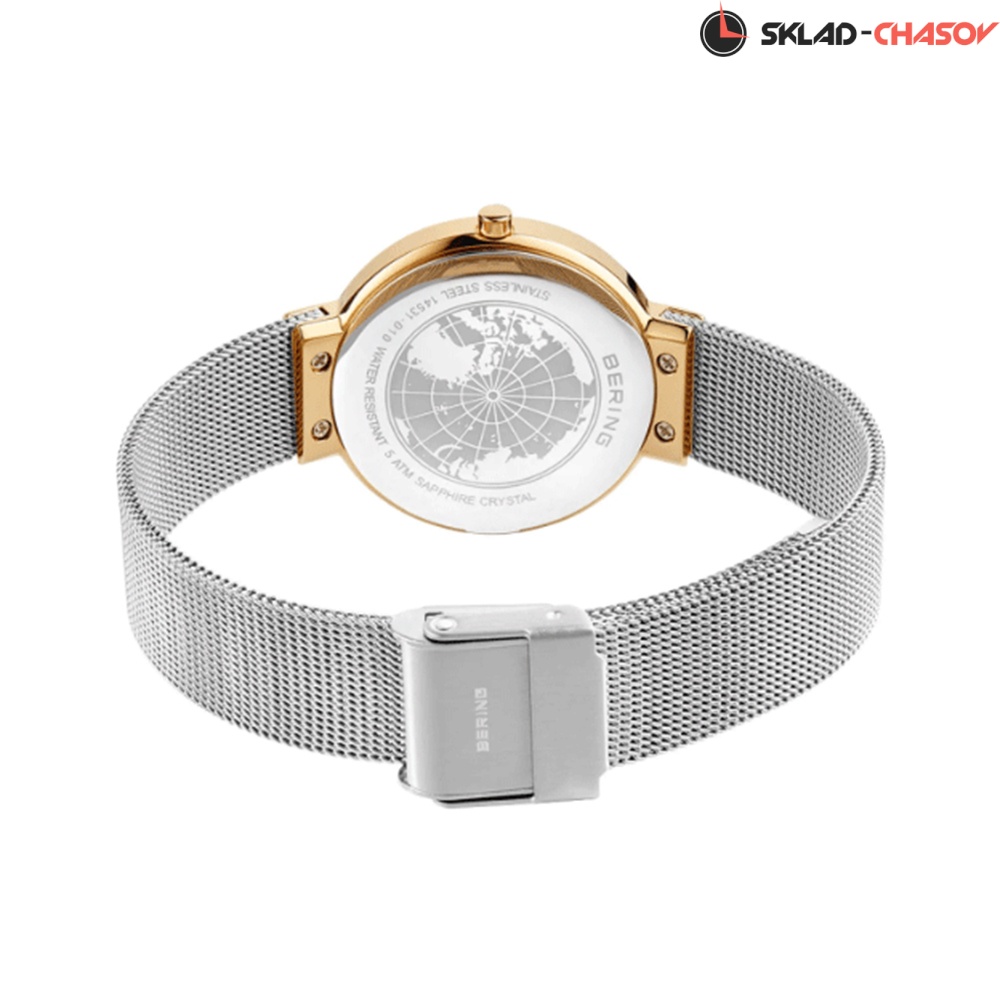 Женские аналоговые кварцевые наручные часы. Classic Collection. Механизм MIYOTA 9T22. Центральные часовая и минутная стрелки. Белый циферблат. Круглый стальной полированный корпус с покрытием цвета жёлтого золота. Диаметр корпуса 31 мм, толщина 6 мм. Устойчивое к возникновению мелких царапин плоское сапфировое стекло. Стальной браслет миланского плетения. Ширина браслета 14 мм. Водозащита WR 50 (мытьё рук, дождь).