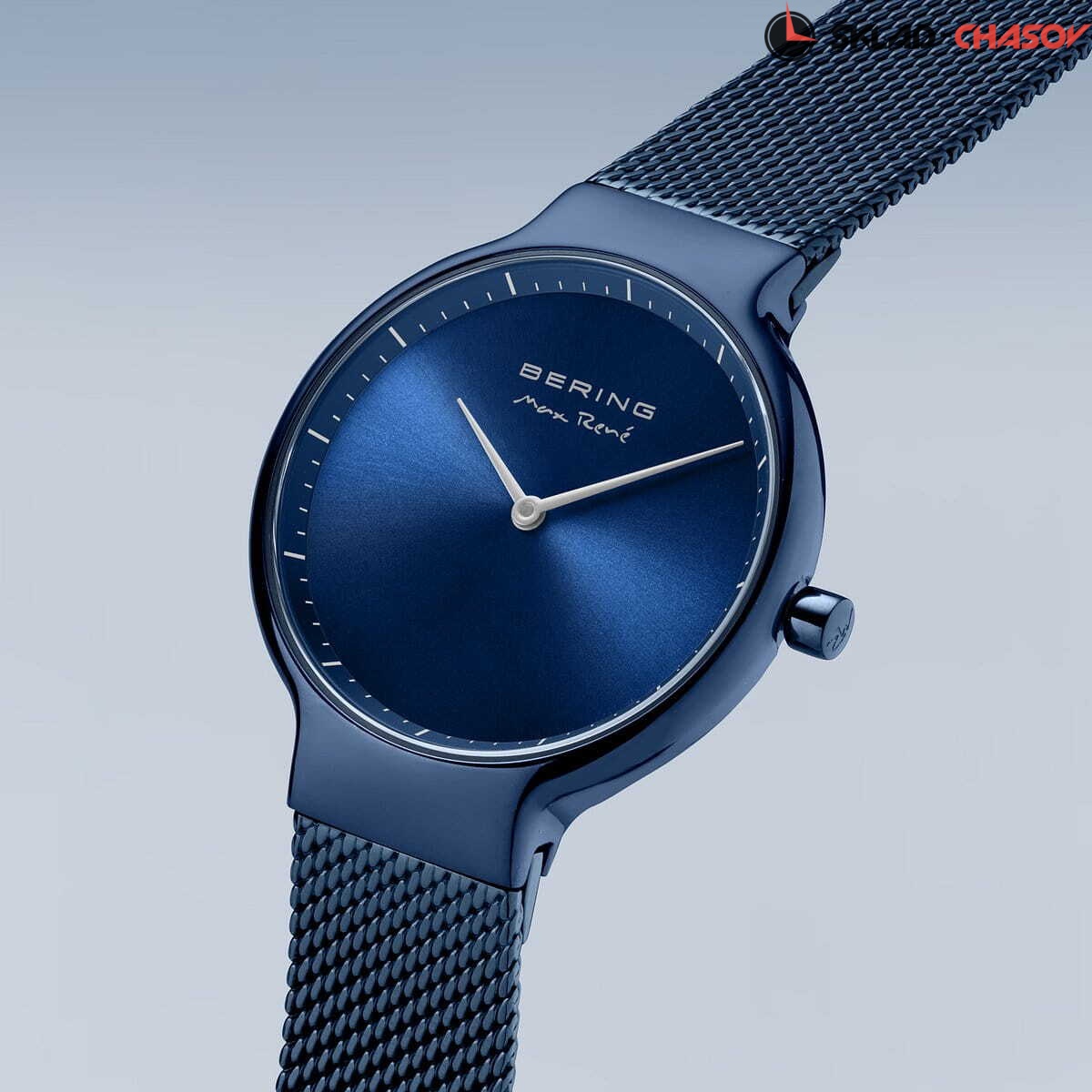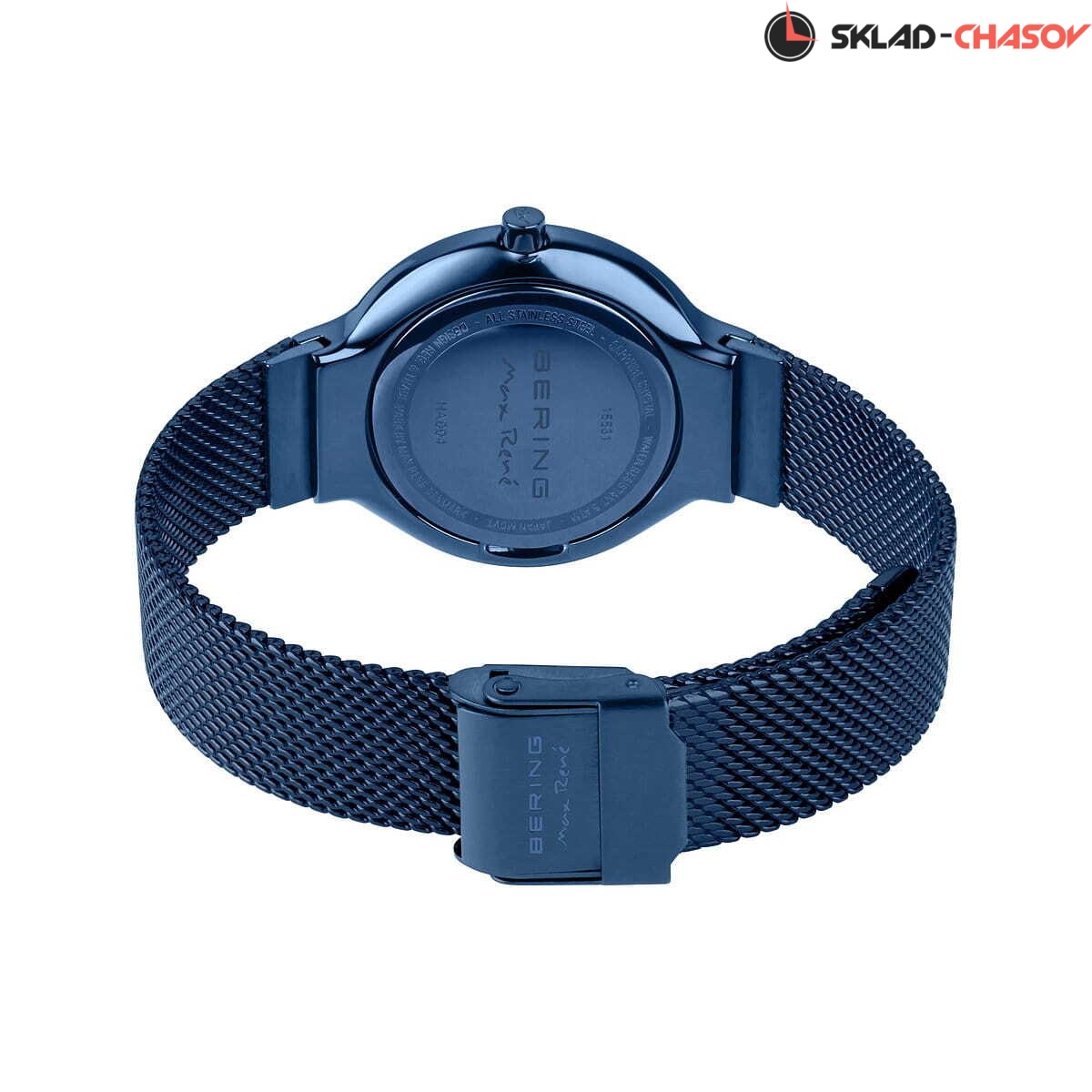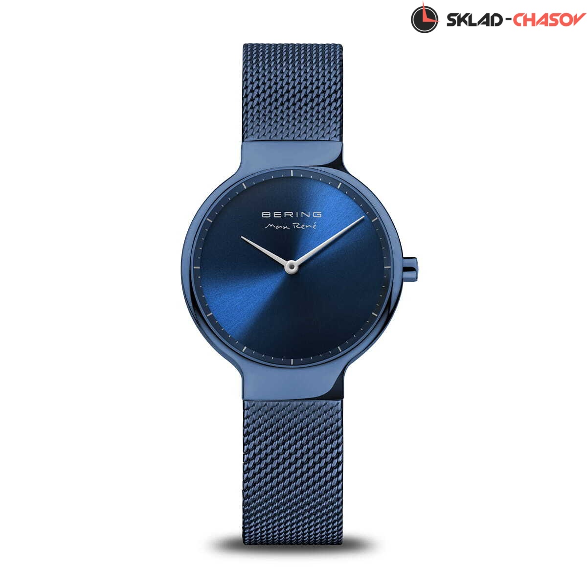 Женские аналоговые кварцевые наручные часы. Коллекция создана ведущим датским дизайнером Максом Рене. Механизм Miyota GL22. Центральные часовая и минутная стрелки. Синий циферблат с автографом Макса Рене и часовыми метками в виде штрихов. Круглый стальной полированный корпус с покрытием синего цвета. Диаметр корпуса 31 мм, толщина 7 мм. Устойчивое к возникновению мелких царапин плоское сапфировое стекло. Стальной браслет миланского плетения с покрытием синего цвета, ширина браслета 14 мм. Стальная задняя крышка с автографом Макса Рене. Инициалы Макса Рене также выгравированы на переводной головке. Водозащита WR 50 (мытьё рук, дождь).