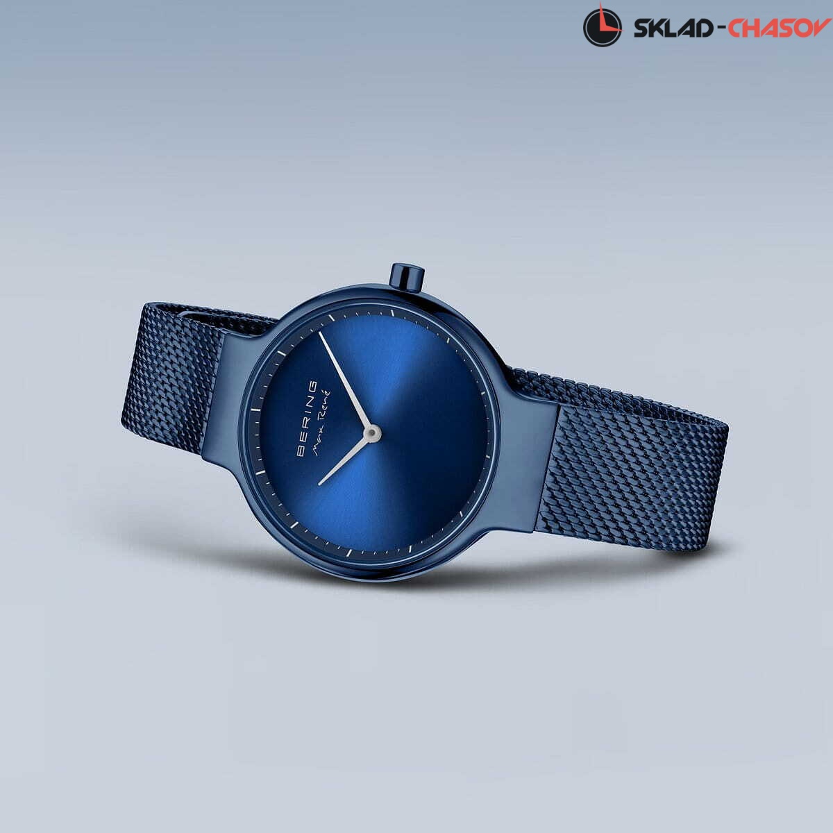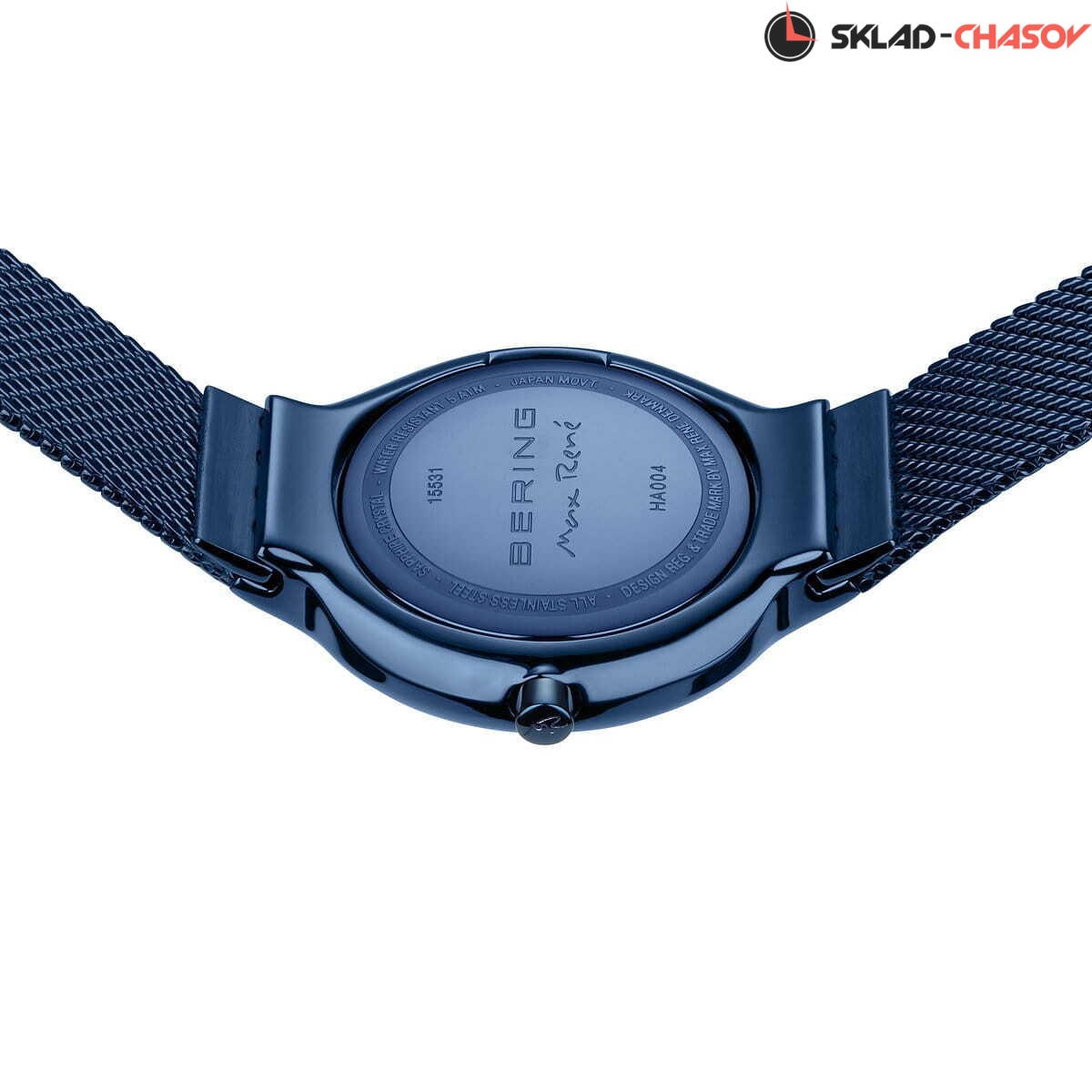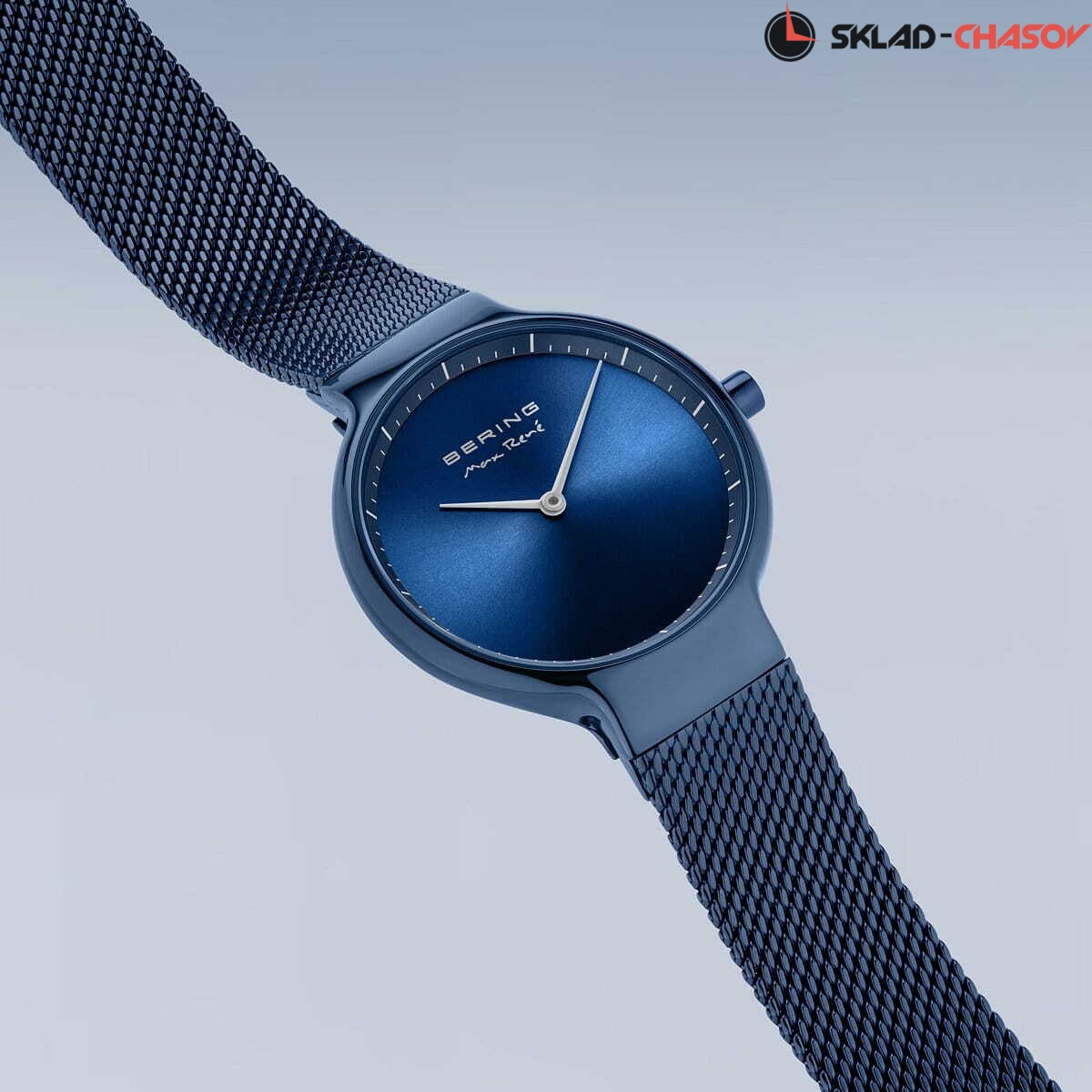 Женские аналоговые кварцевые наручные часы. Коллекция создана ведущим датским дизайнером Максом Рене. Механизм Miyota GL22. Центральные часовая и минутная стрелки. Синий циферблат с автографом Макса Рене и часовыми метками в виде штрихов. Круглый стальной полированный корпус с покрытием синего цвета. Диаметр корпуса 31 мм, толщина 7 мм. Устойчивое к возникновению мелких царапин плоское сапфировое стекло. Стальной браслет миланского плетения с покрытием синего цвета, ширина браслета 14 мм. Стальная задняя крышка с автографом Макса Рене. Инициалы Макса Рене также выгравированы на переводной головке. Водозащита WR 50 (мытьё рук, дождь).