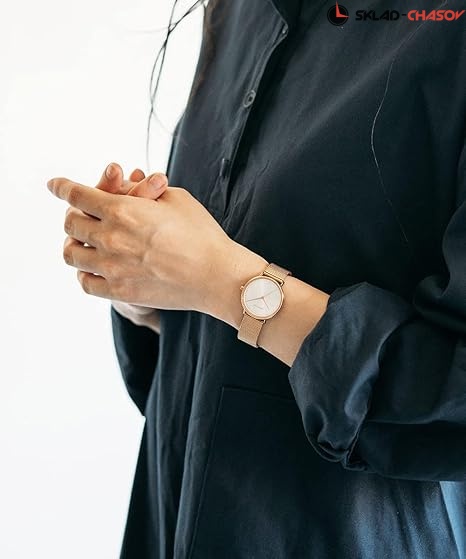Полированный стальной корпус с IP-покрытием розовое золото. Диаметр 29мм.