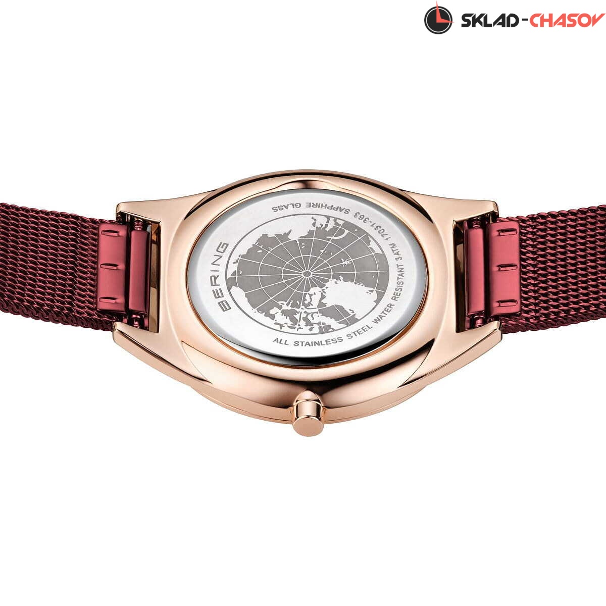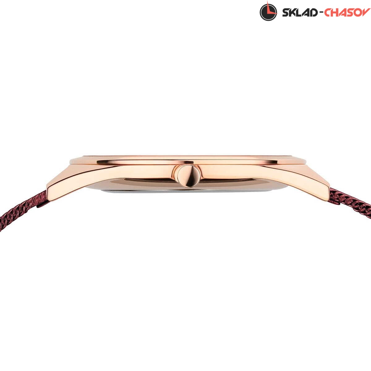 Женские аналоговые кварцевые наручные часы. Classic Collection Ultra Slim. Центральные часовая и минутная стрелки. Красный циферблат с часовыми метками в виде штрихов. Ультратонкий круглый стальной полированный корпус с покрытием цвета розового золота. Диаметр корпуса 31 мм, толщина 5 мм. Устойчивое к возникновению мелких царапин плоское сапфировое стекло. Стальной браслет миланского плетения с покрытием красного цвета, ширина браслета 14 мм. Водозащита WR 30 (брызги).