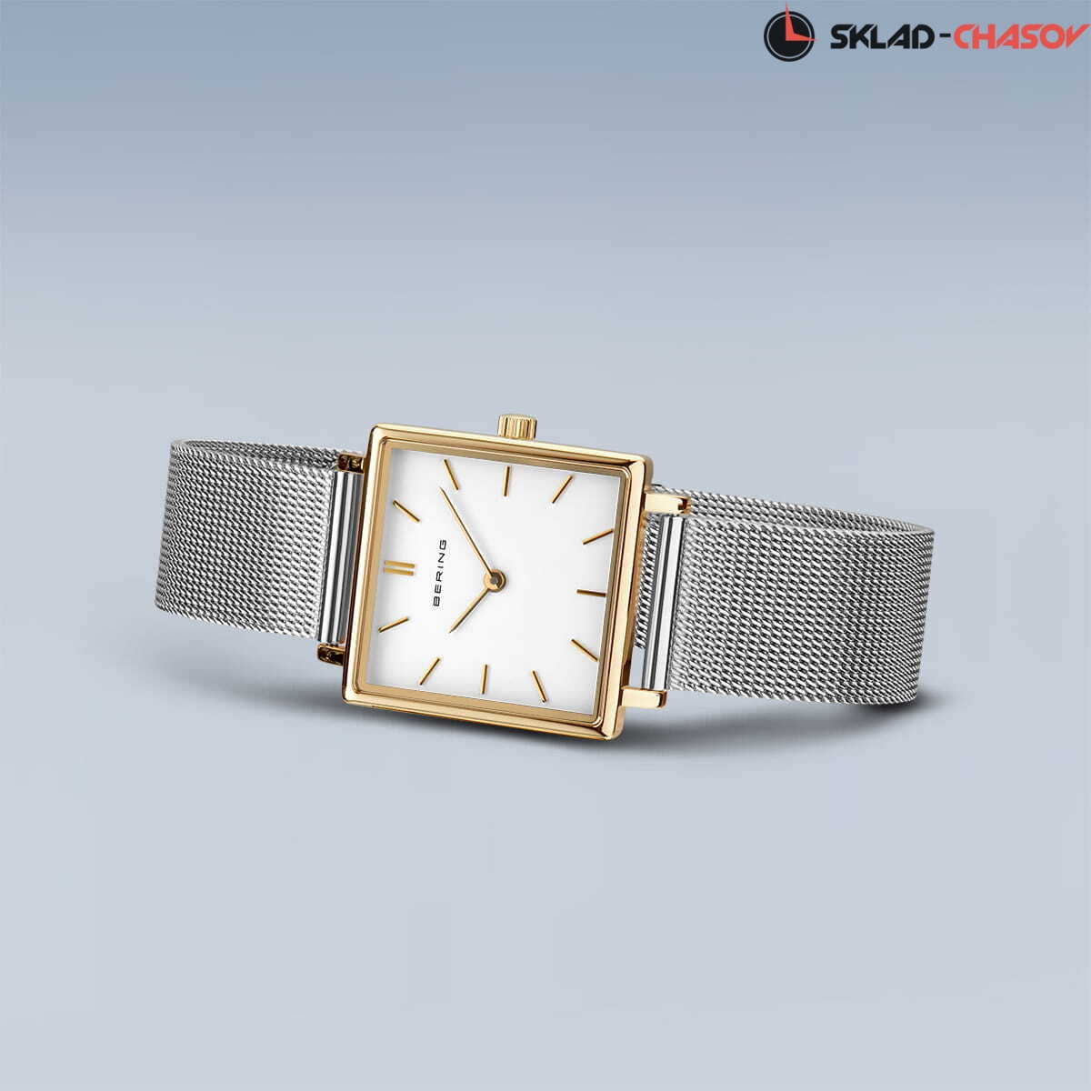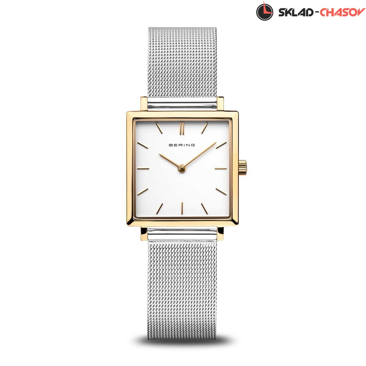 Женские аналоговые кварцевые наручные часы. Classic Collection. Механизм Miyota GL22. Центральные часовая и минутная стрелки. Белый циферблат с часовыми метками в виде штрихов. Прямоугольный стальной полированный корпус с покрытием цвета жёлтое золото. Размер корпуса 33 мм на 26 мм, толщина 6 мм. Устойчивое к возникновению мелких царапин плоское сапфировое стекло. Стальной браслет миланского плетения шириной 16 мм. Водозащита WR 30 (брызги).