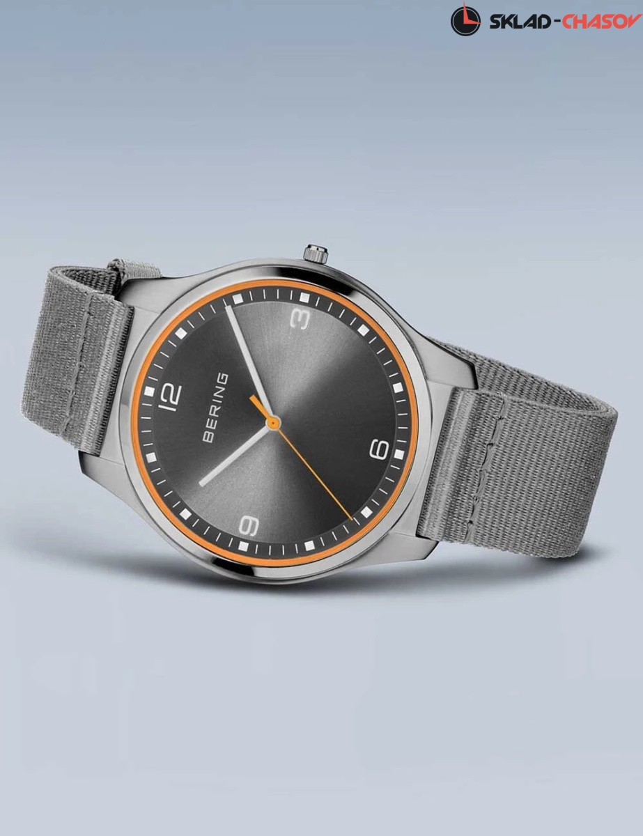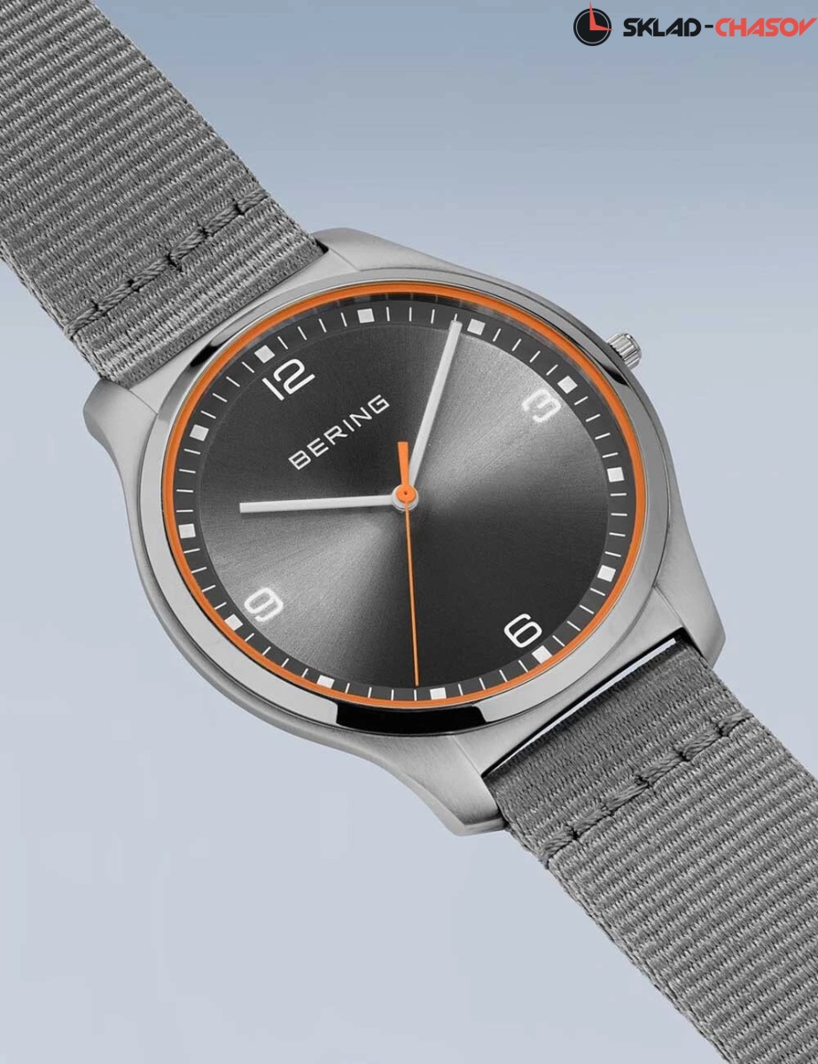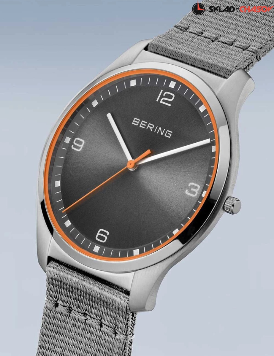 Серый циферблат с гильоширование в виде солнечных лучей.
