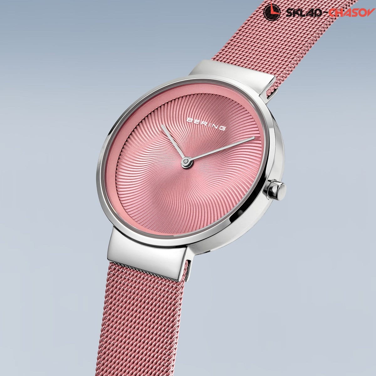 Розовый циферблат с гильоширование.