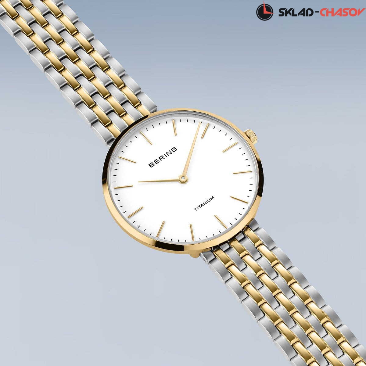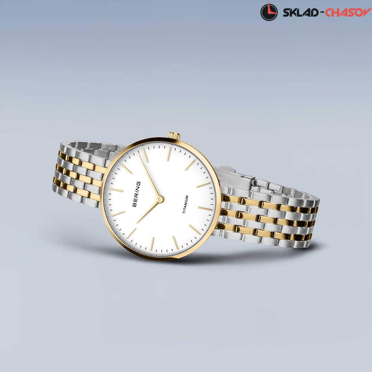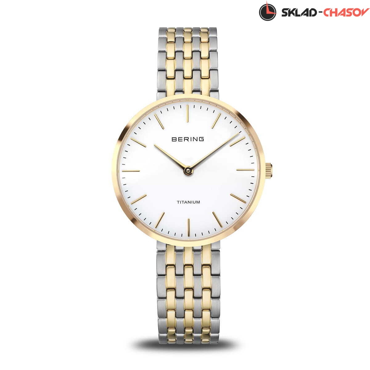 Женские аналоговые кварцевые наручные часы. Сверхлегкие и элегантные. Коллекция Titanium. Механизм Miyota GL22. Центральные часовая и минутная стрелки золотистого цвета. Белый циферблат с часовыми метками в виде штрихов. Круглый титановый полированный корпус с покрытием цвета жёлтое золото. Диаметр корпуса 34 мм, толщина 6 мм. Устойчивое к возникновению мелких царапин плоское сапфировое стекло. Титановый браслет с частичным покрытием цвета жёлтое золото. Ширина браслета 14 мм, раскладывающаяся застежка. Водозащита WR 50 (мытьё рук, дождь).