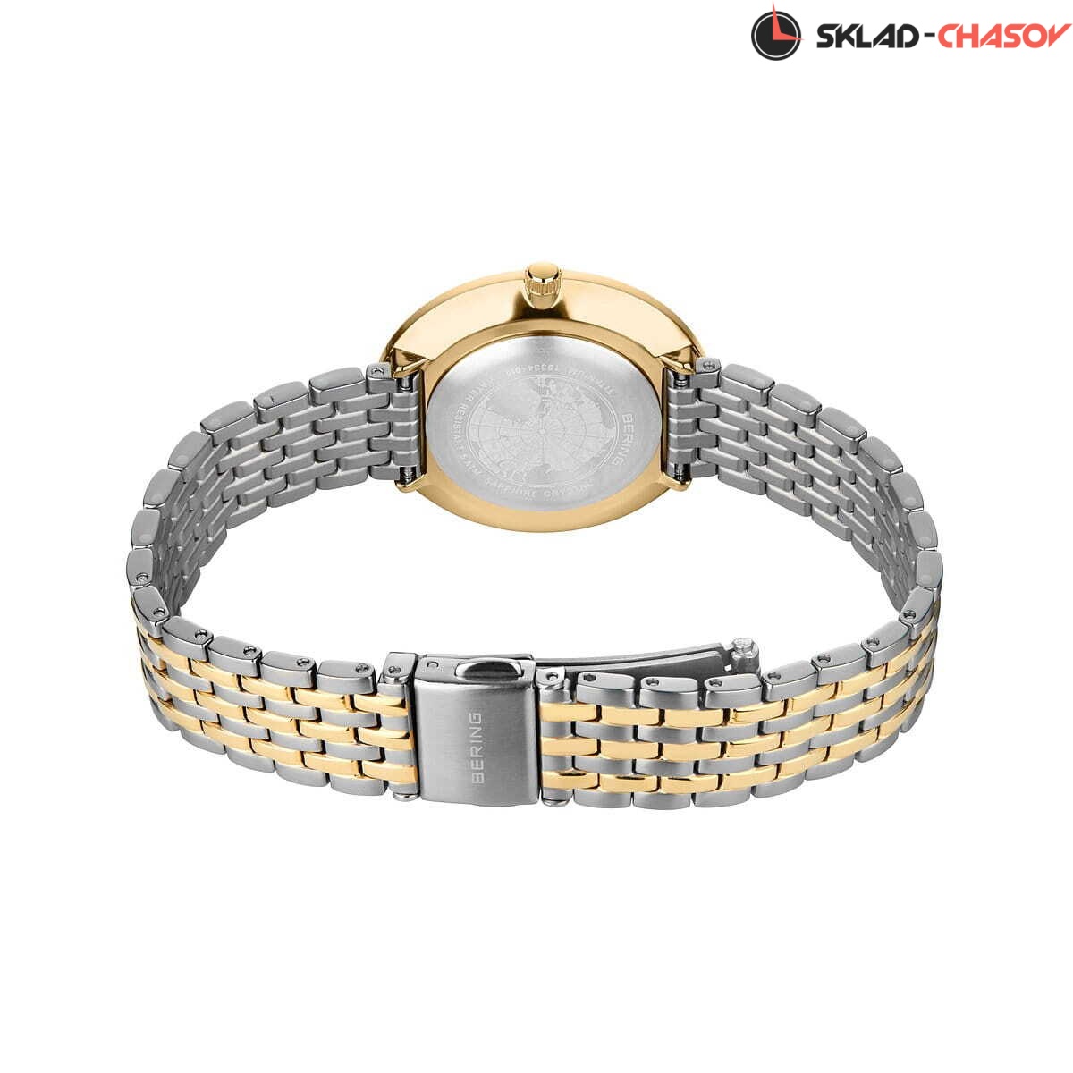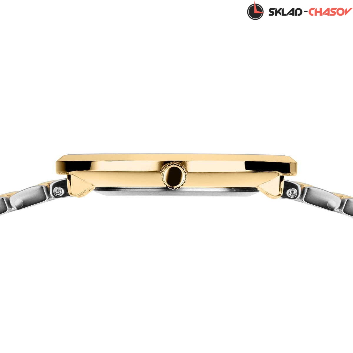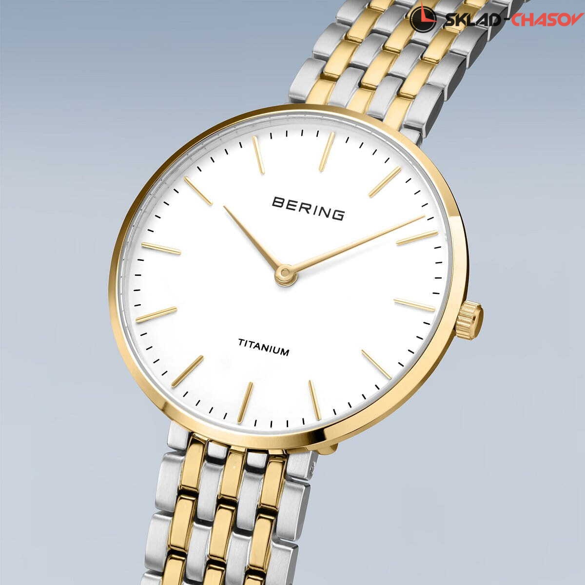Женские аналоговые кварцевые наручные часы. Сверхлегкие и элегантные. Коллекция Titanium. Механизм Miyota GL22. Центральные часовая и минутная стрелки золотистого цвета. Белый циферблат с часовыми метками в виде штрихов. Круглый титановый полированный корпус с покрытием цвета жёлтое золото. Диаметр корпуса 34 мм, толщина 6 мм. Устойчивое к возникновению мелких царапин плоское сапфировое стекло. Титановый браслет с частичным покрытием цвета жёлтое золото. Ширина браслета 14 мм, раскладывающаяся застежка. Водозащита WR 50 (мытьё рук, дождь).