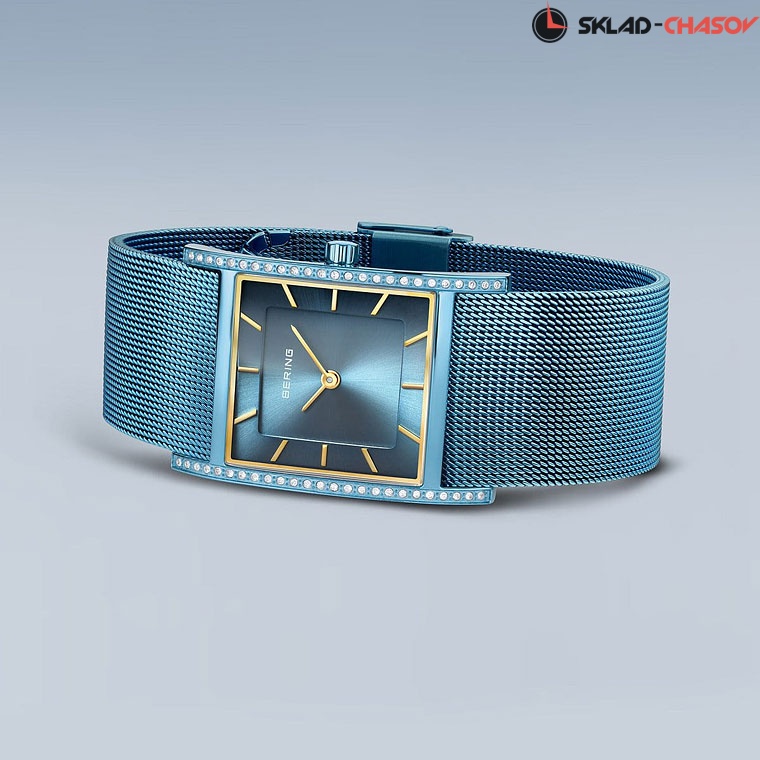 Полированный стальной корпус с кристаллами голубого цвета. Размер корпуса 26*38мм.