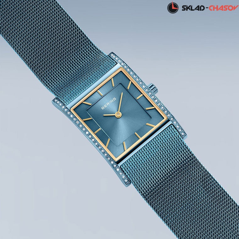 Голубой циферблат с гильошированием в виде солнечных лучей.