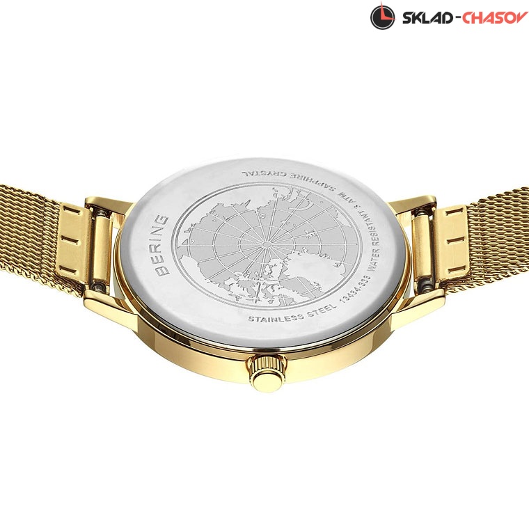 Полированный стальной корпус с золотым IP-покрытием. Диаметр 34мм.