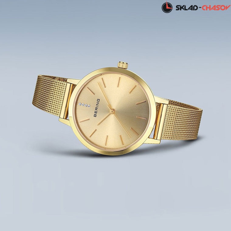 Золотой циферблат с гильошированиеи в виде солнечных лучей и кристаллами.