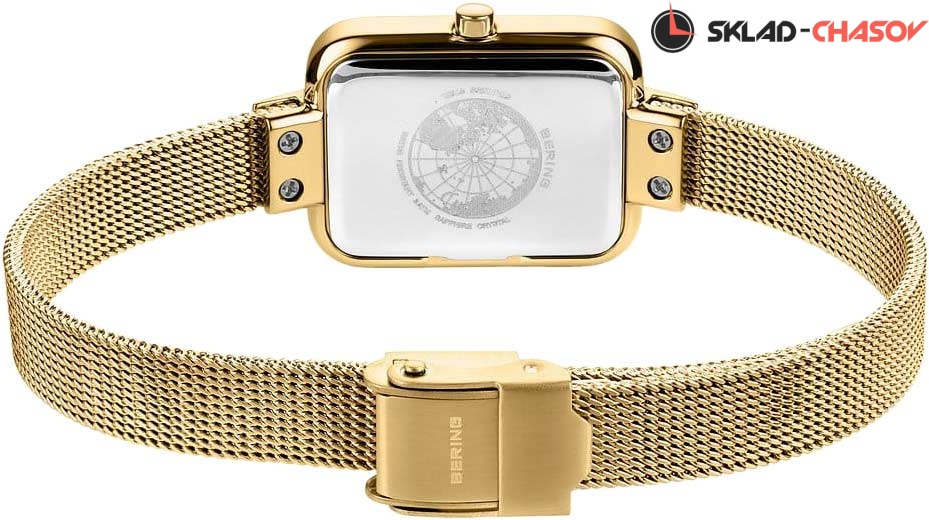 Стальной корпус с полировкой и сатинажем и золотым IP-покрытием. Размер 35 х 20мм.